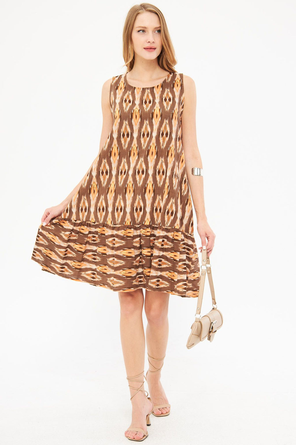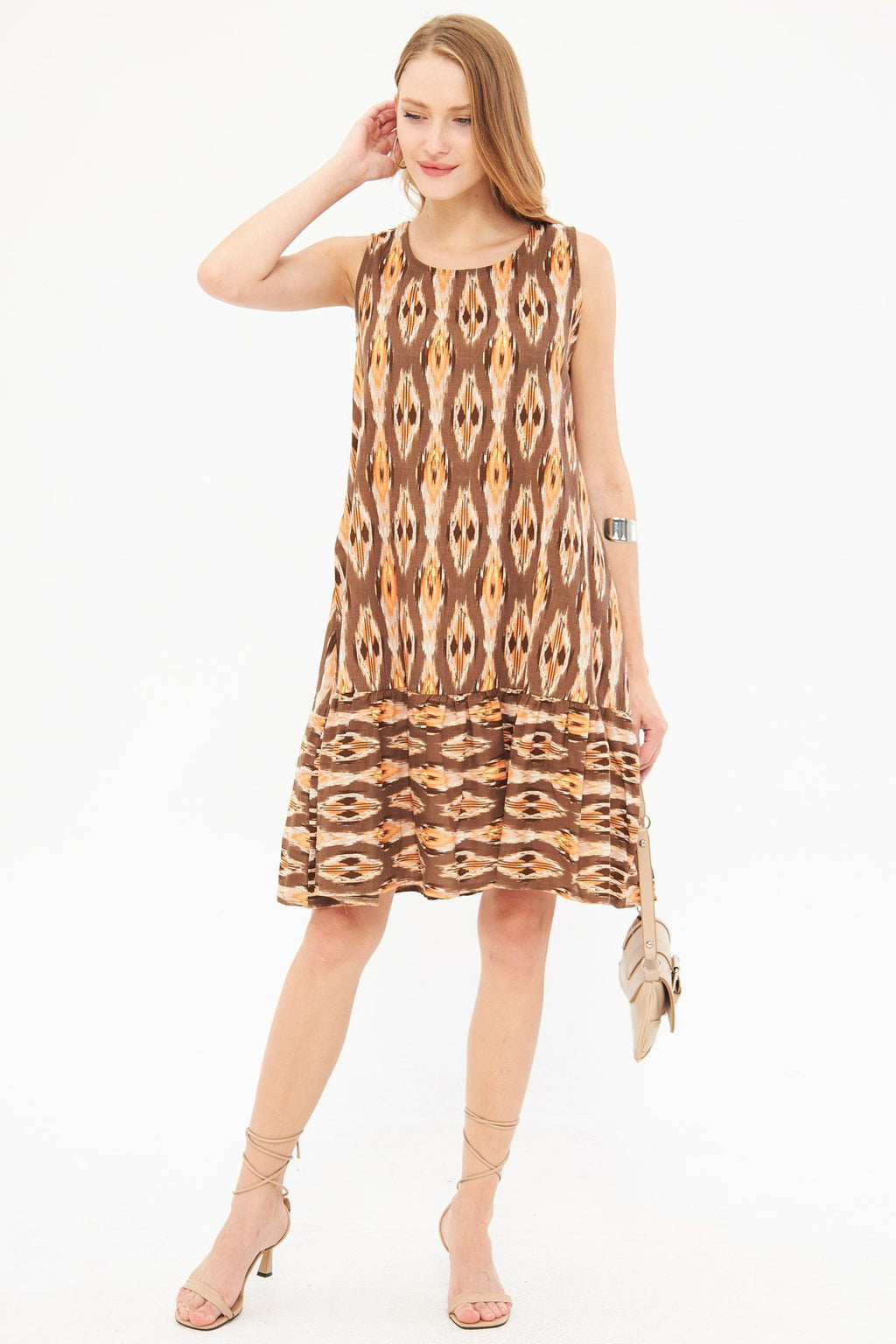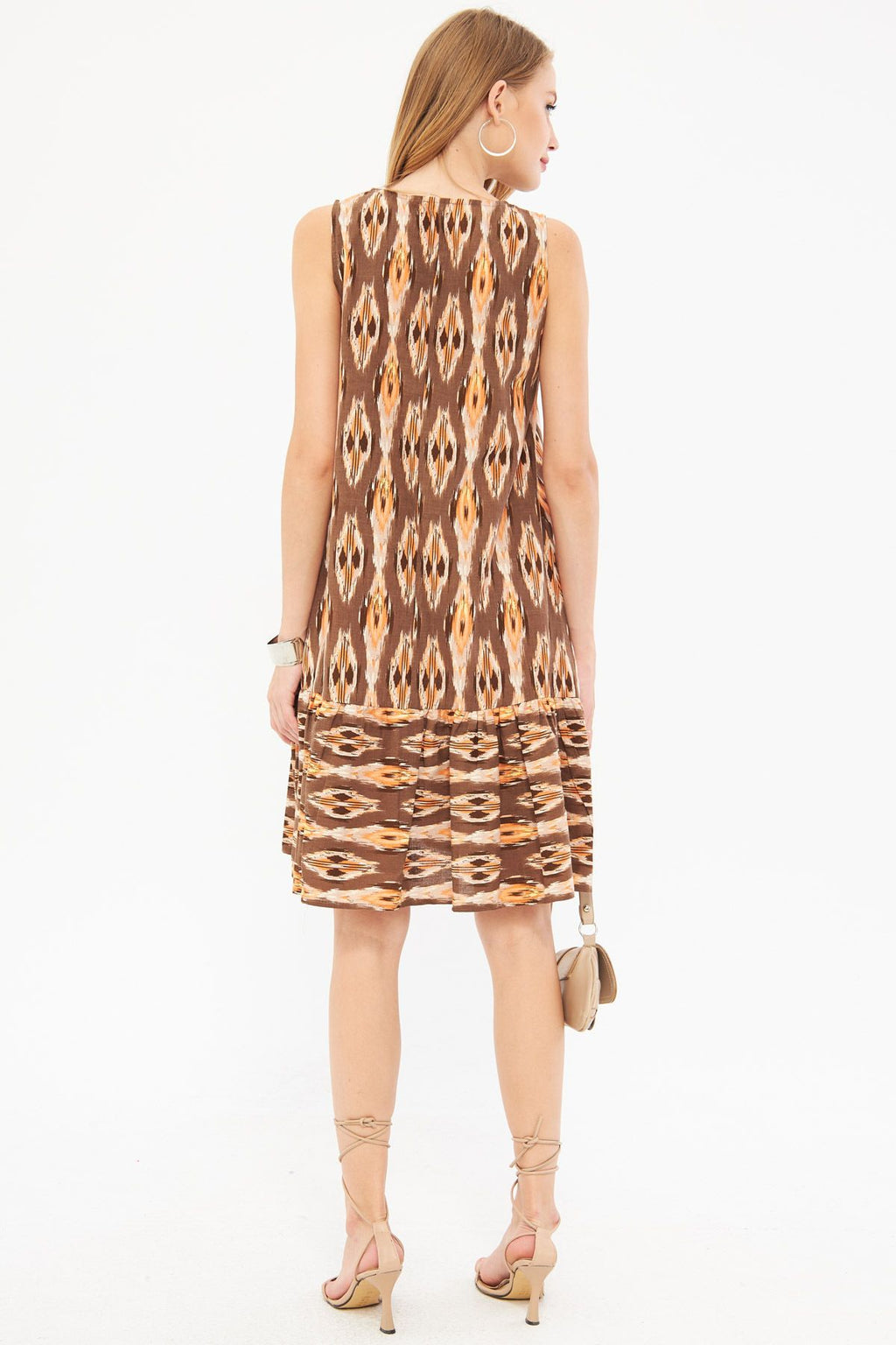 Woman Coffee Patterned Sleeveless Skirt Ruffled Dress ARM-22K001142