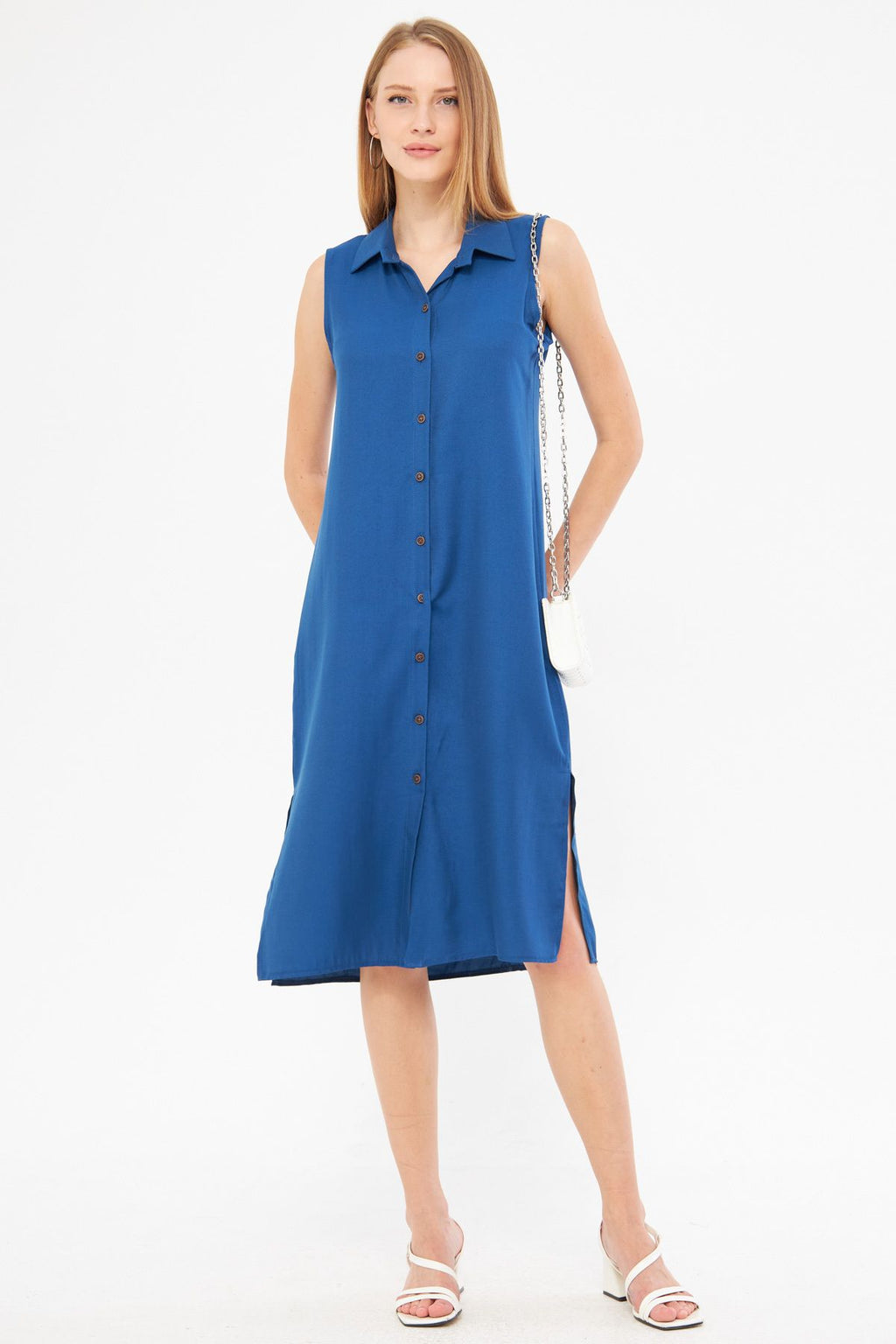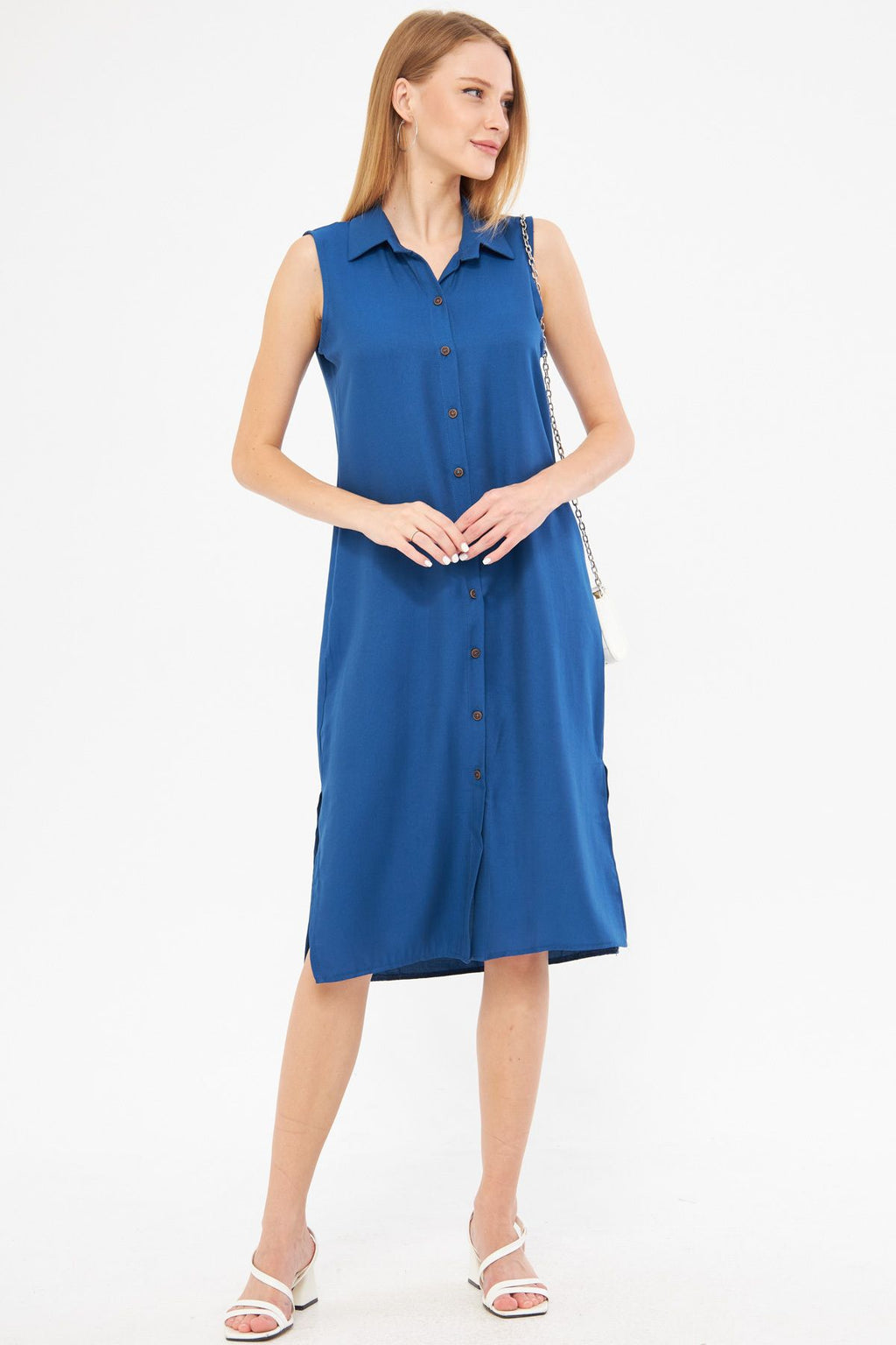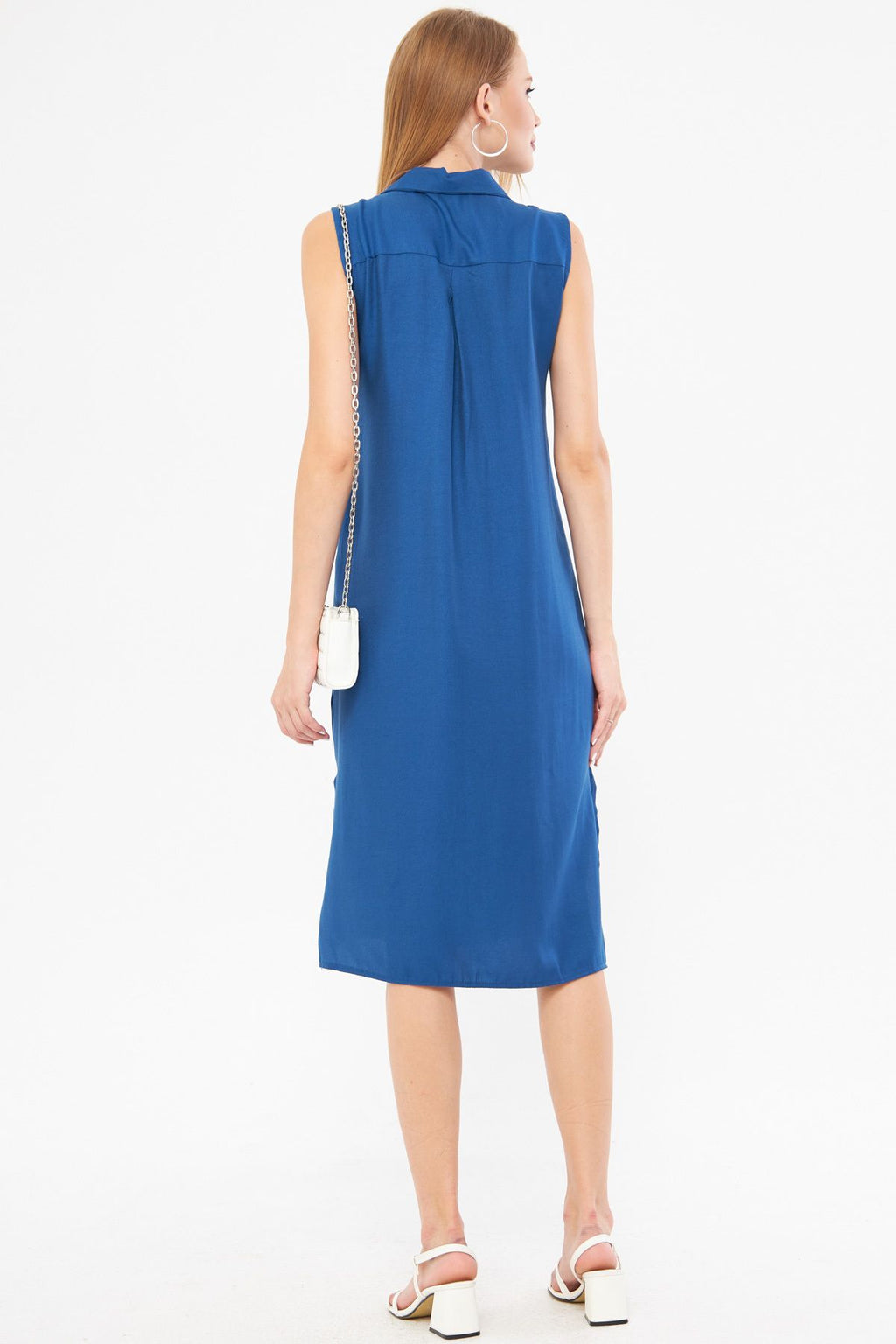 Woman Dark Blue Collar buttoned dress ARM-17Y00028