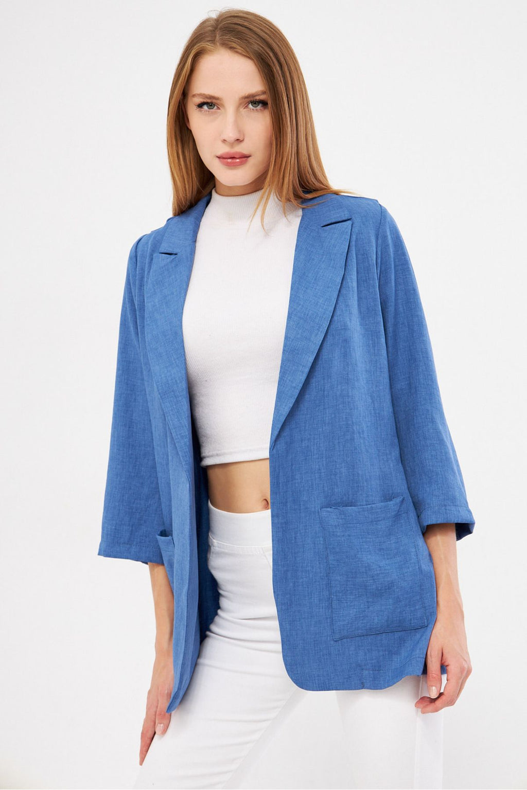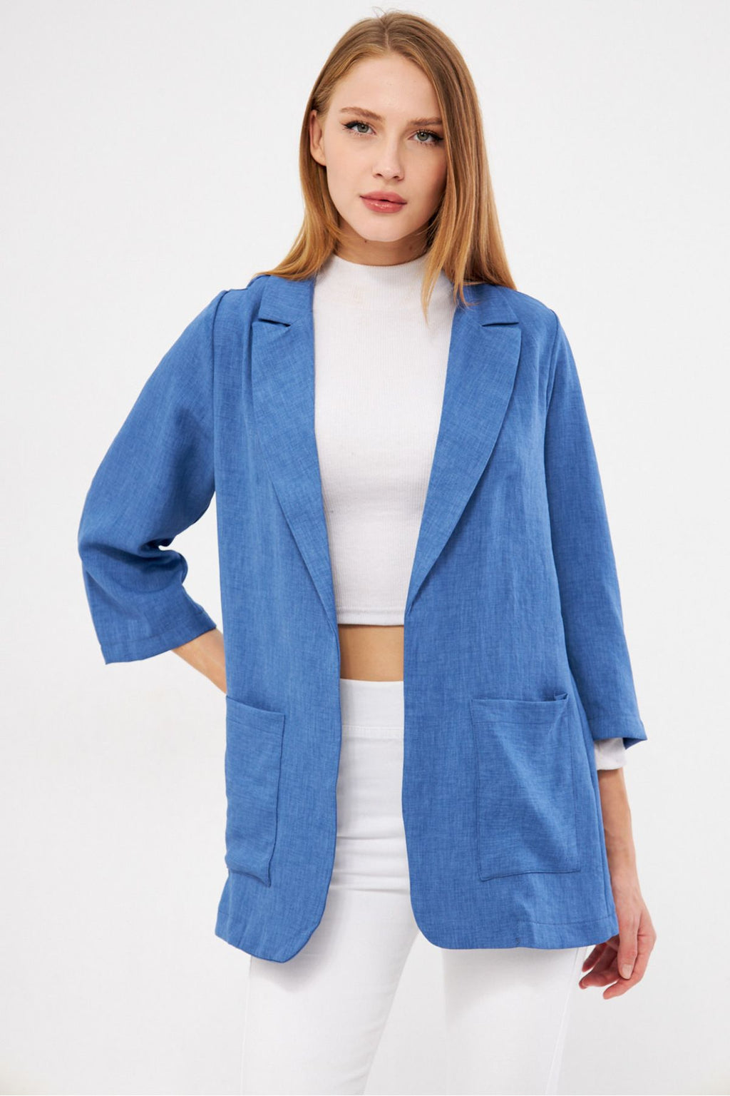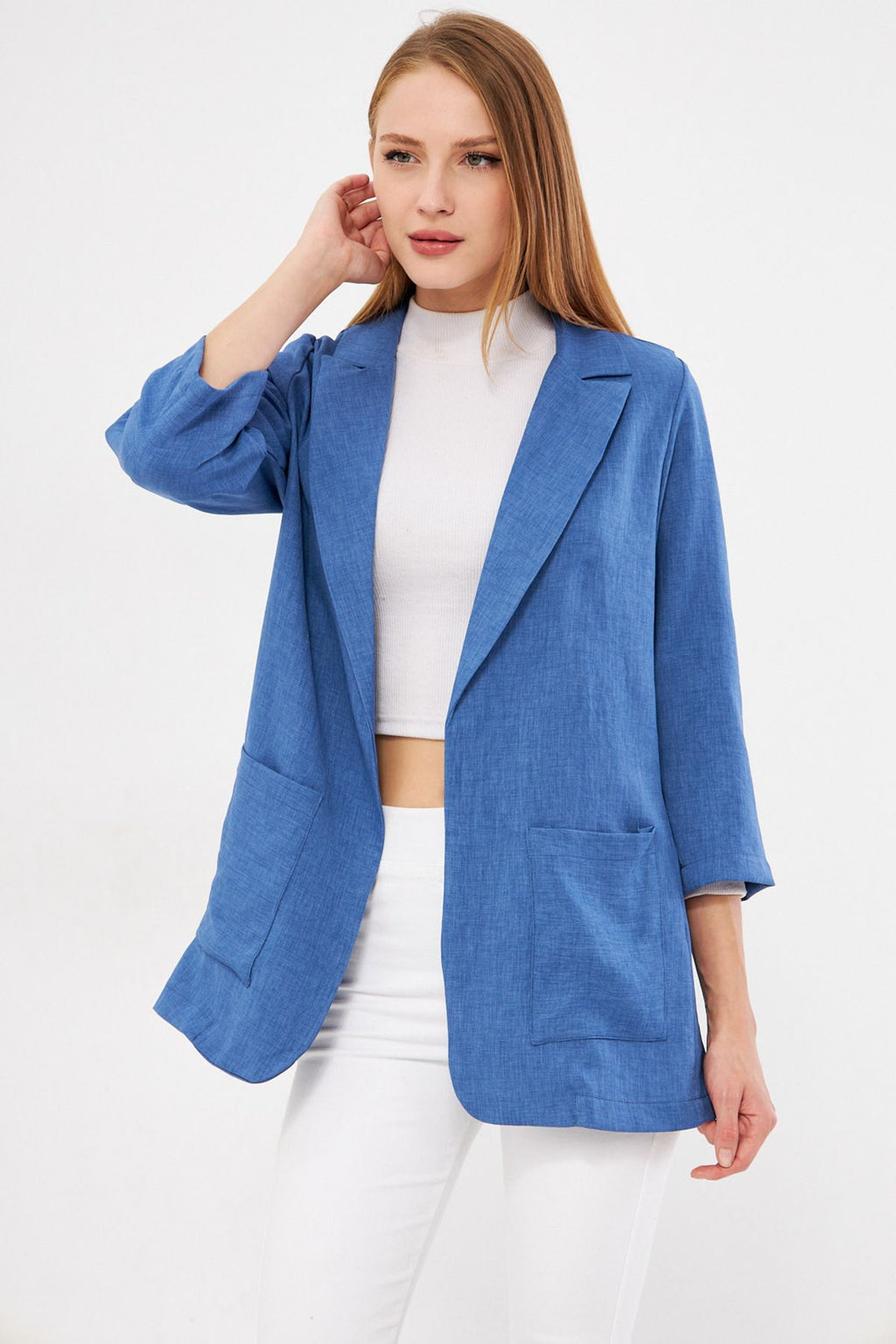 Woman Dark Blue Pocket Oversize Jacket ARM-24Y001115