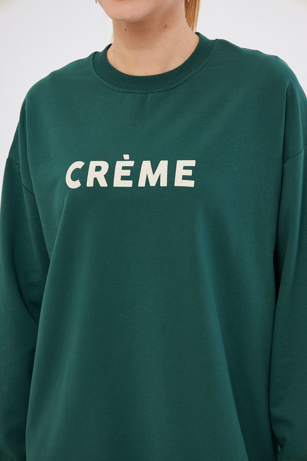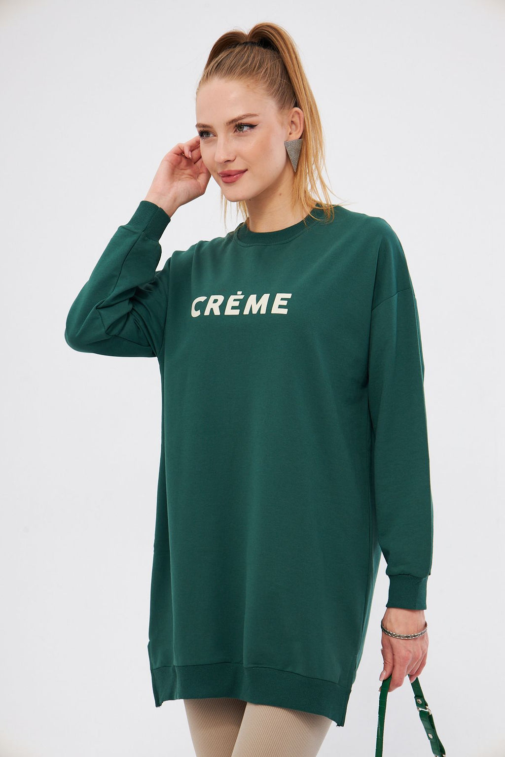 Woman Dark Green Bike in front of the collar written Tunic Sweatshirt ARM-25K001029