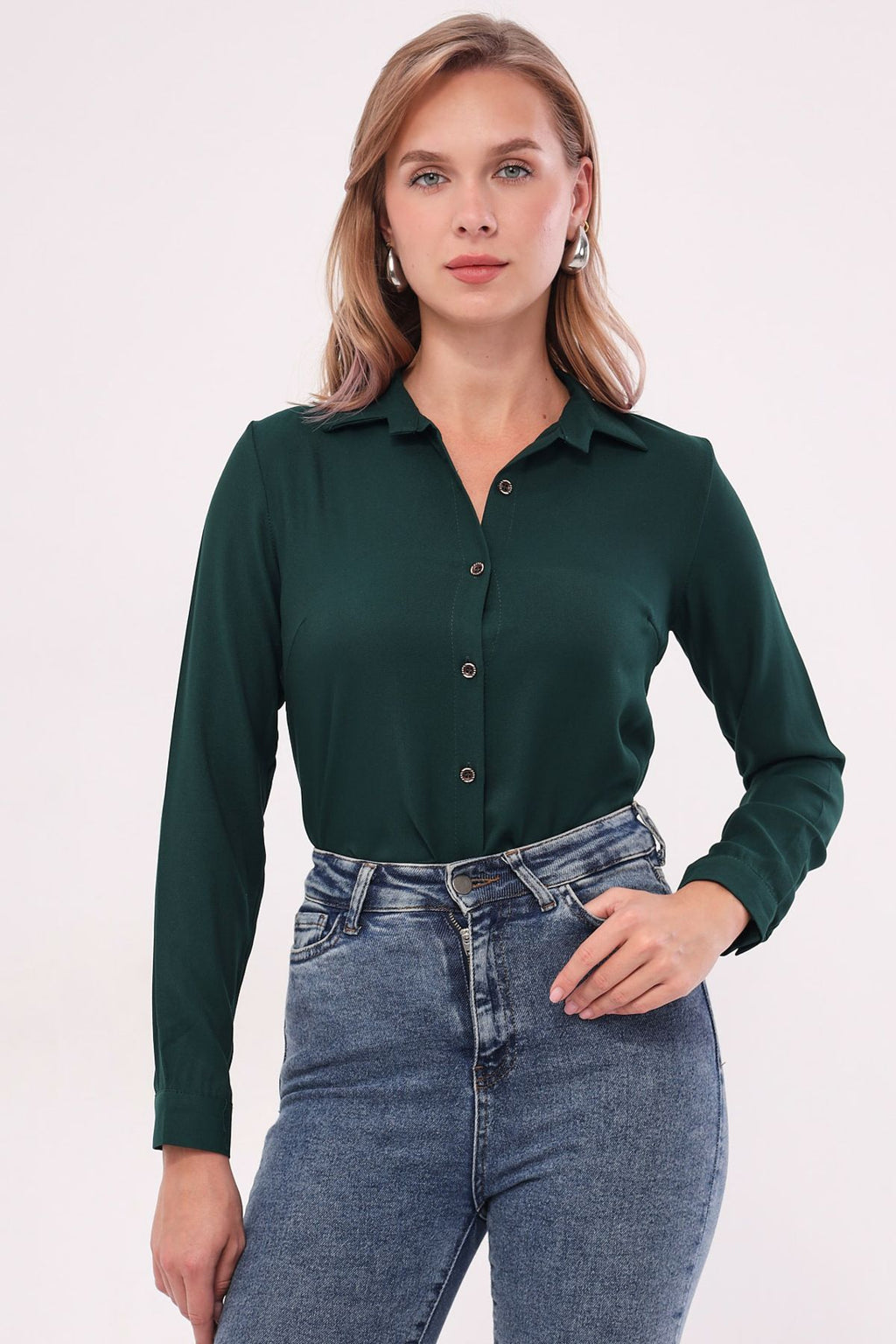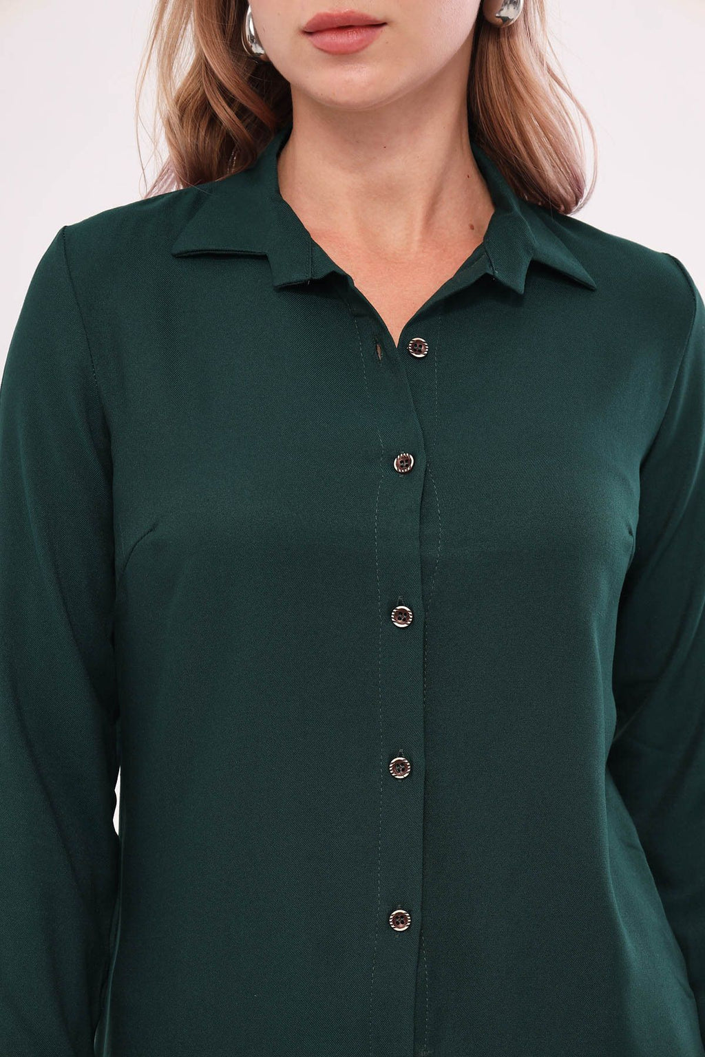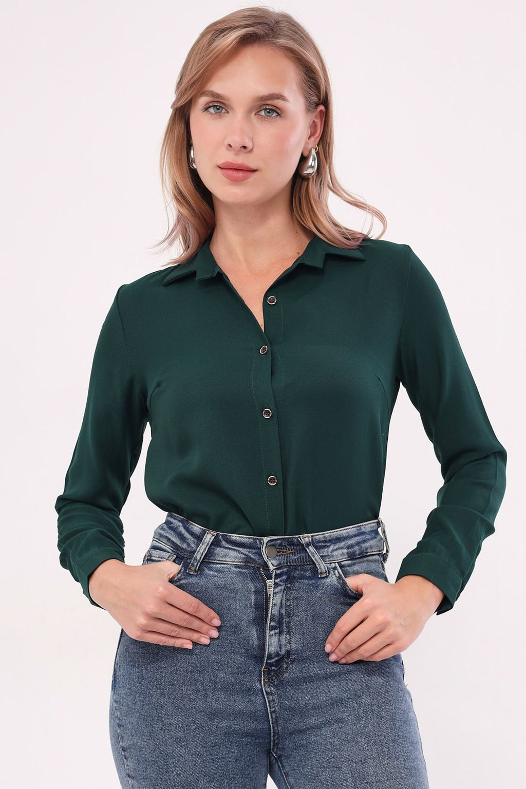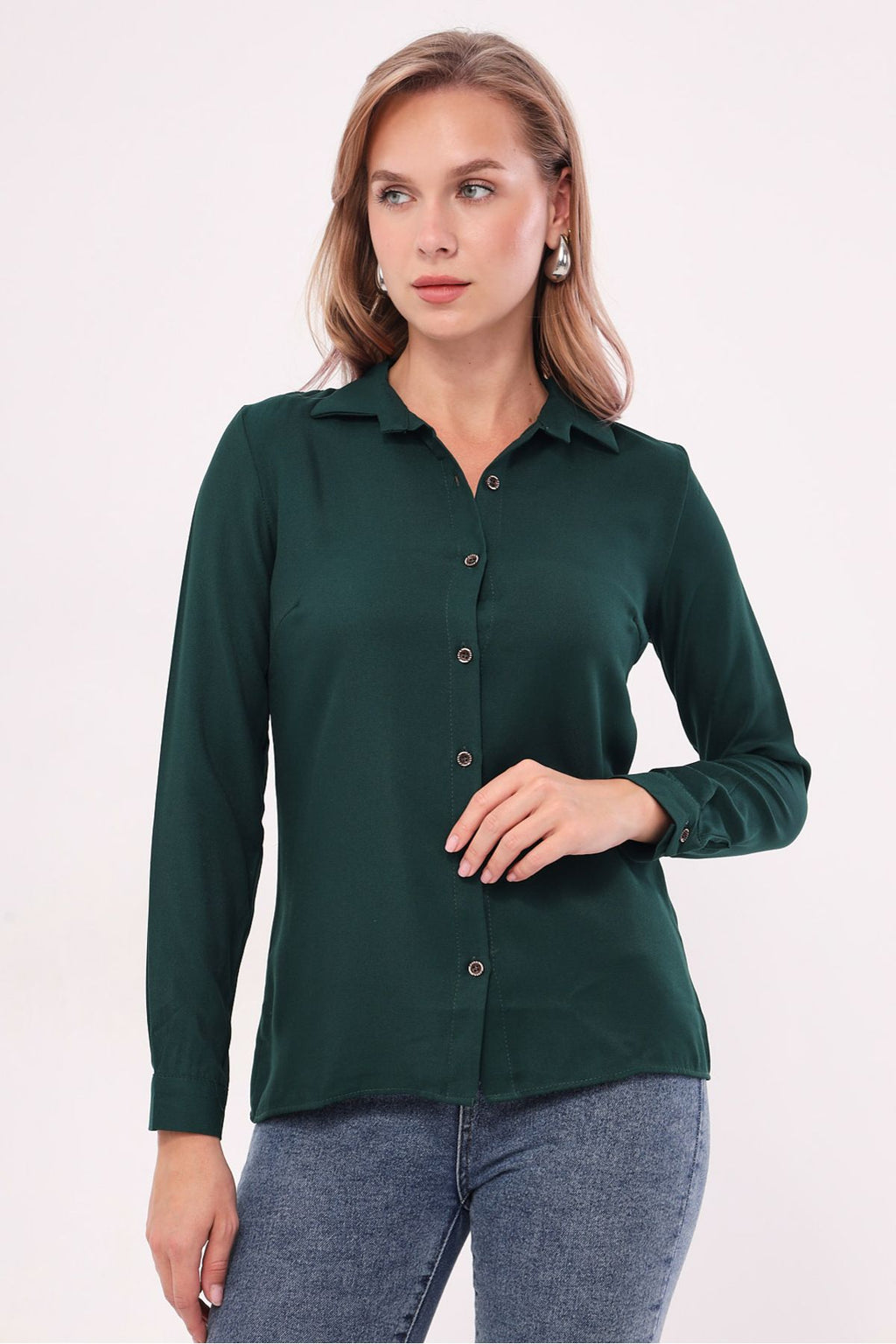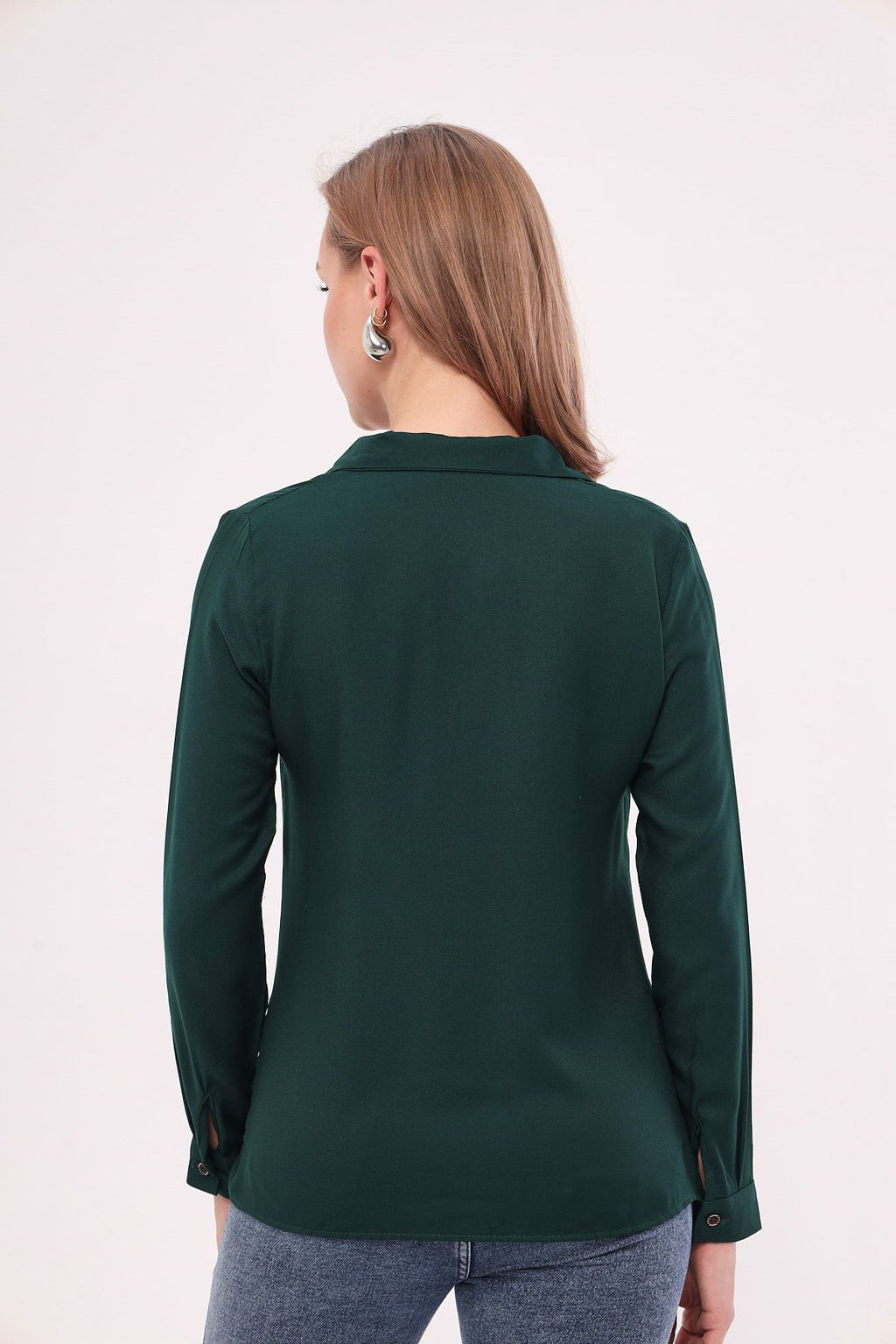 Woman Dark Green Long Sleeve Flat Shirt ARM-18Y001176