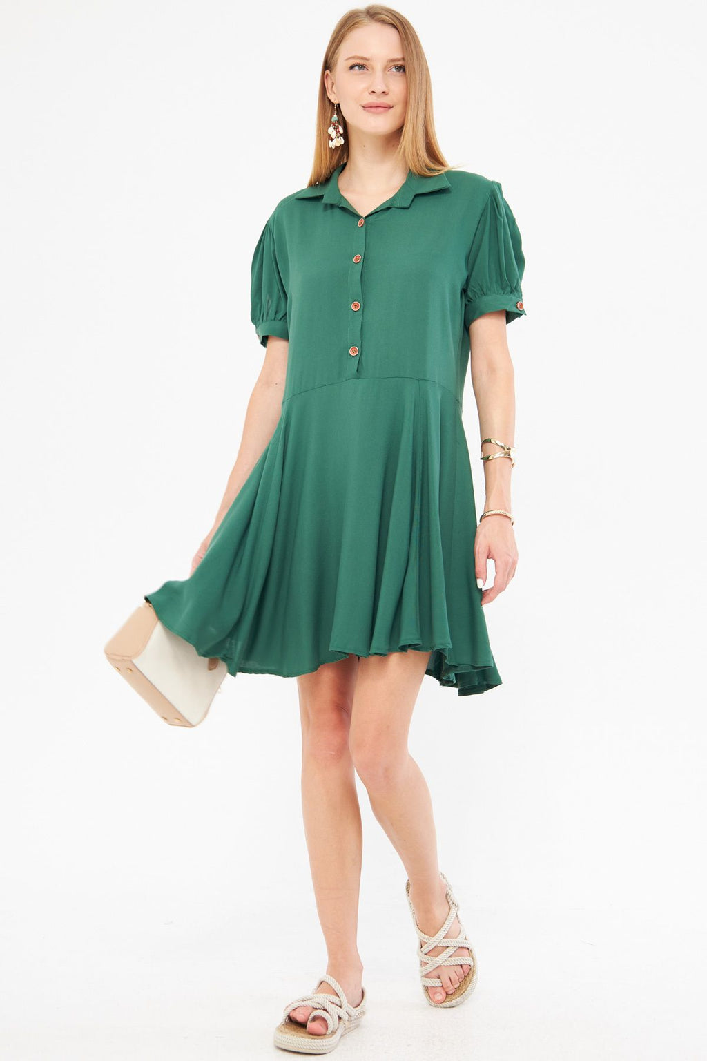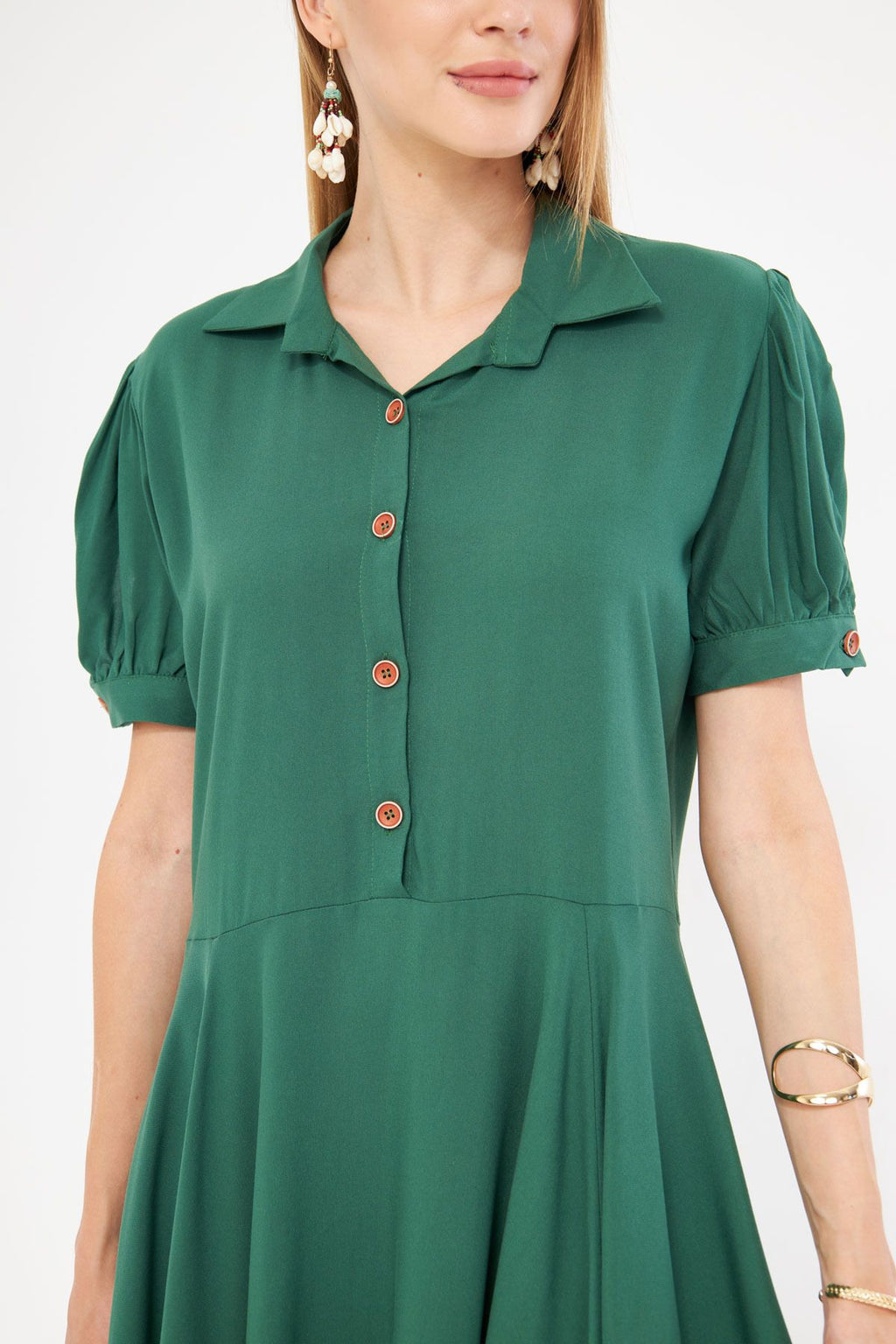 Woman Dark Green Shirt collar arm Slip Detailed Watermelon Sleeve Dress ARM-24Y001083
