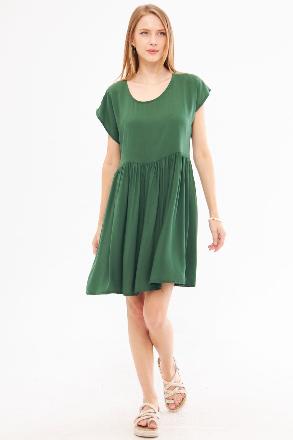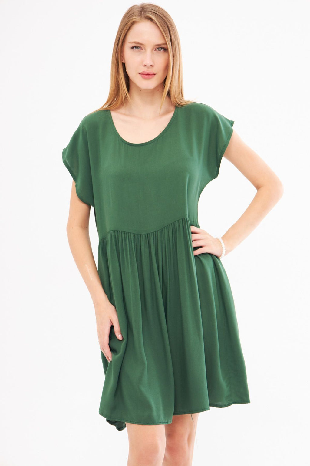 Woman Dark Green Waist Shirred Mini Dress ARM-24Y001090