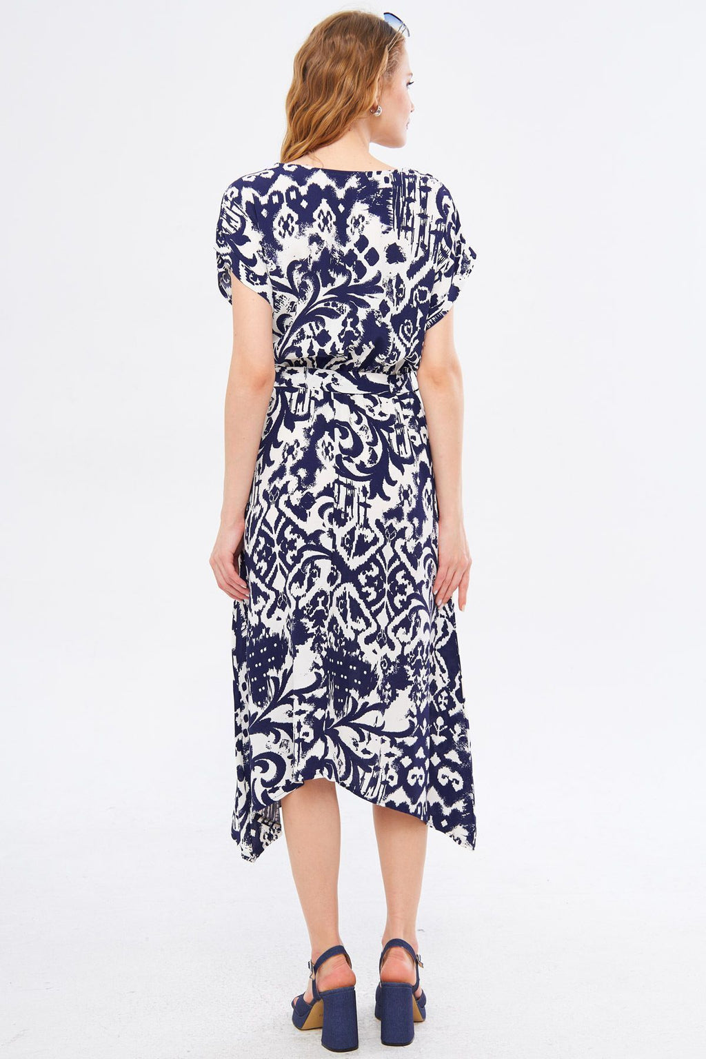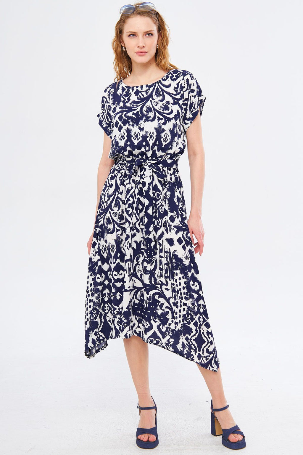 Woman Dark Navy Blind Waist Luckling Patterned Dress ARM-221044