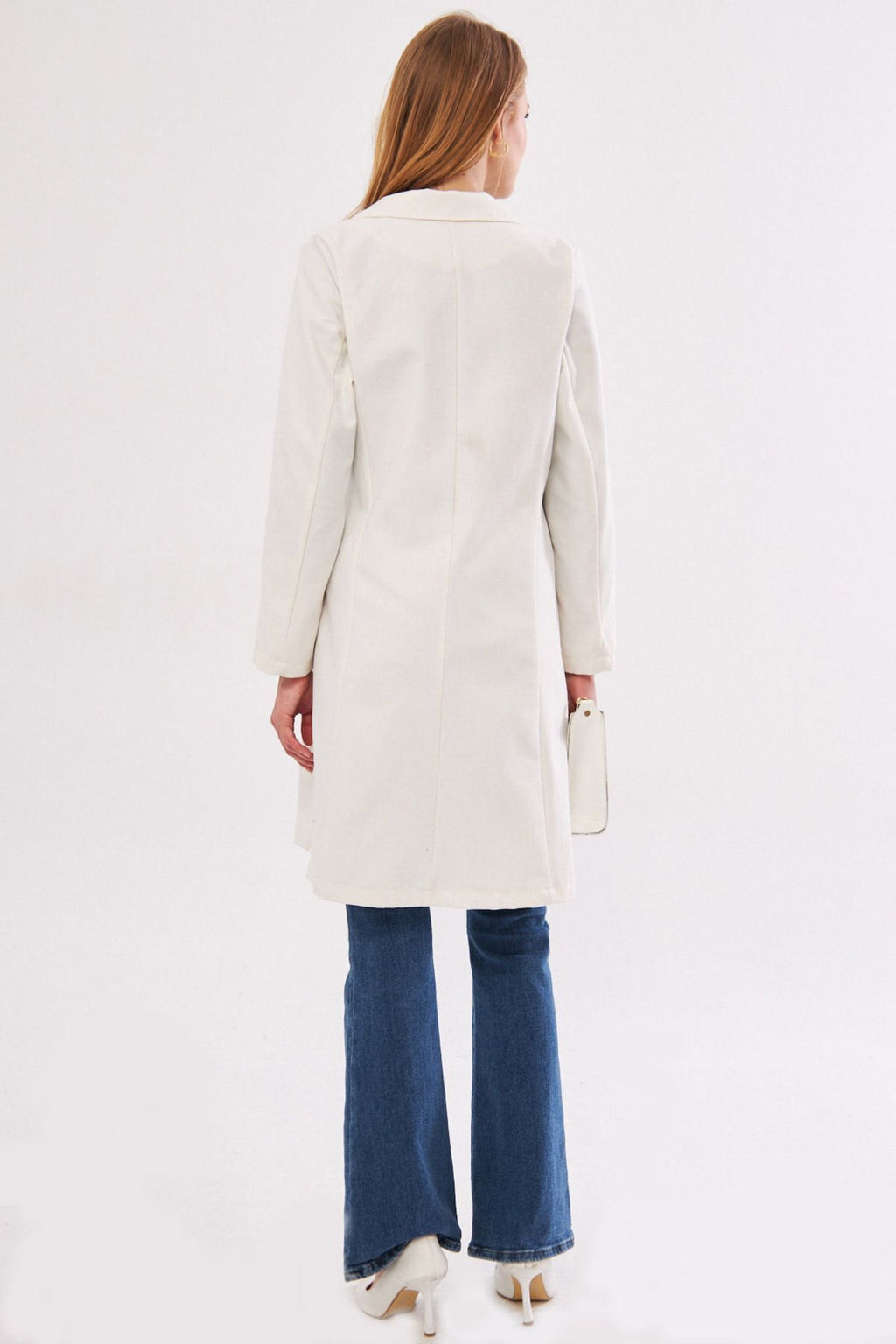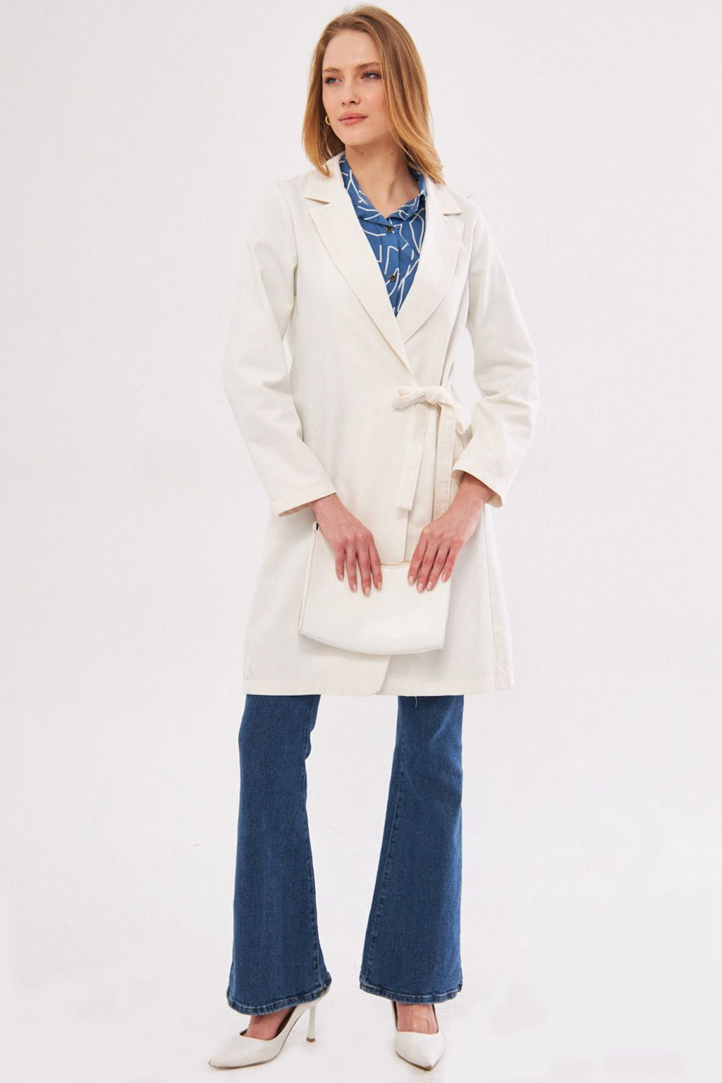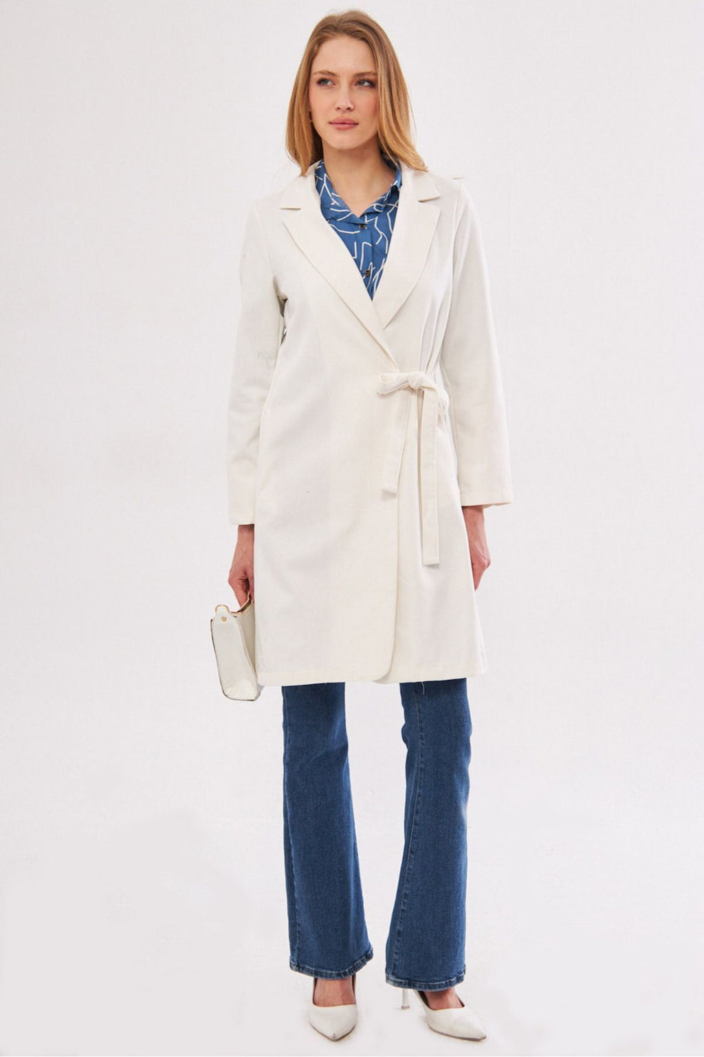 Woman Ekru Side Ties Long Coat ARM-24Y001019