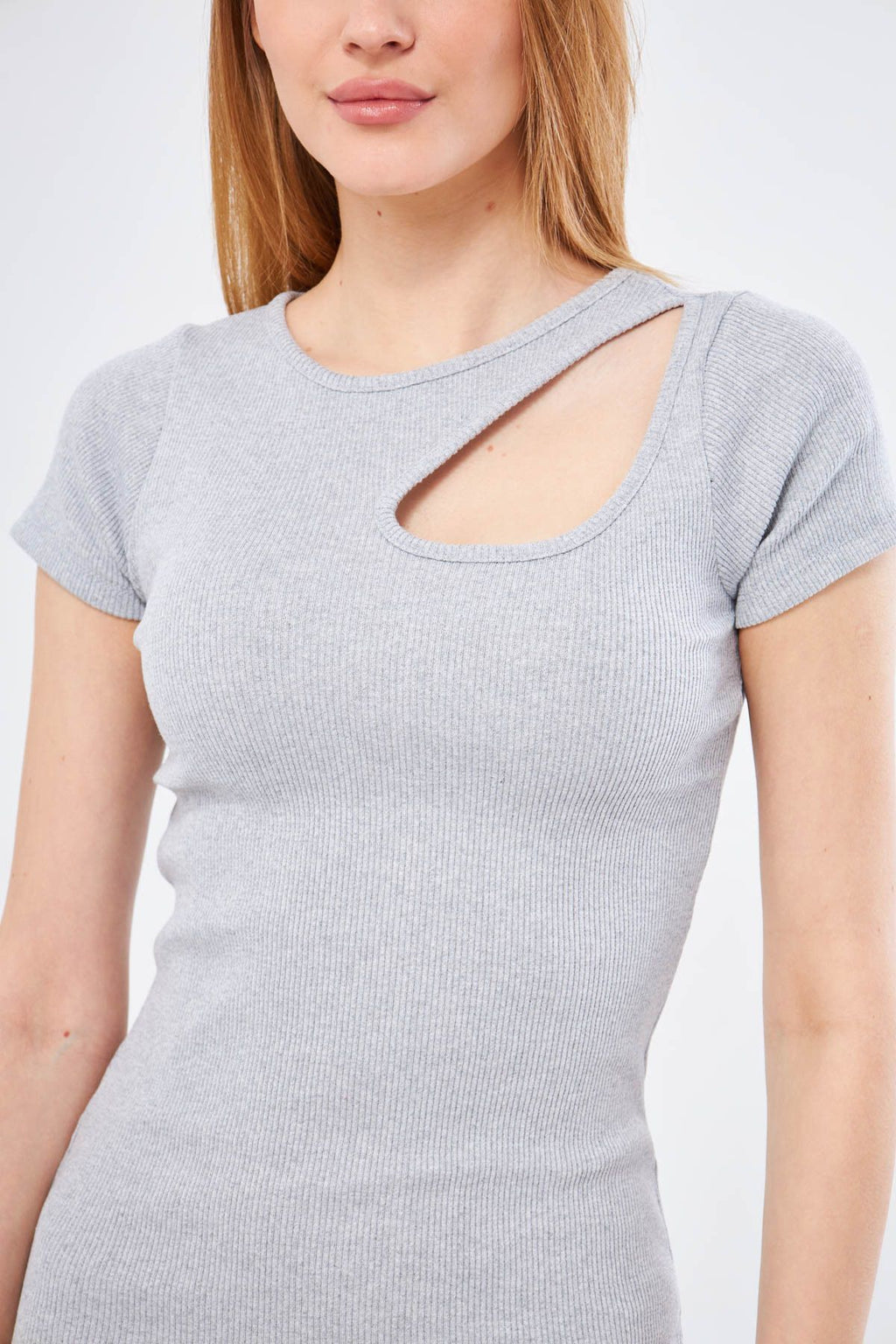 Woman Gray Side Window Sitting on the Body Short Sleeve Dress ARM-24Y133008
