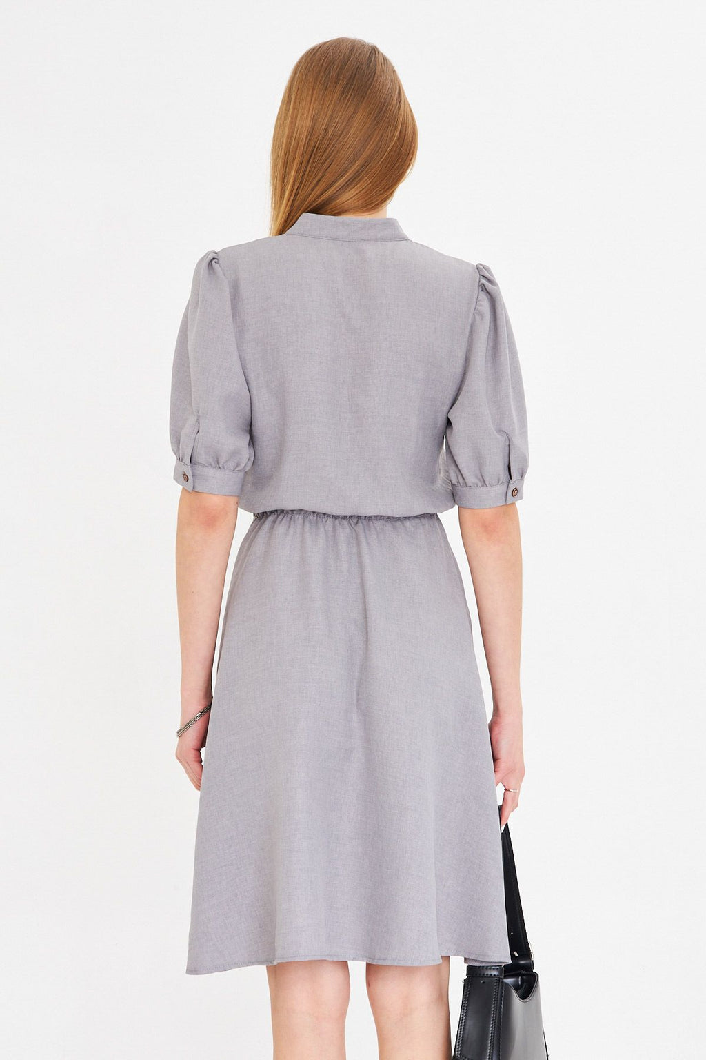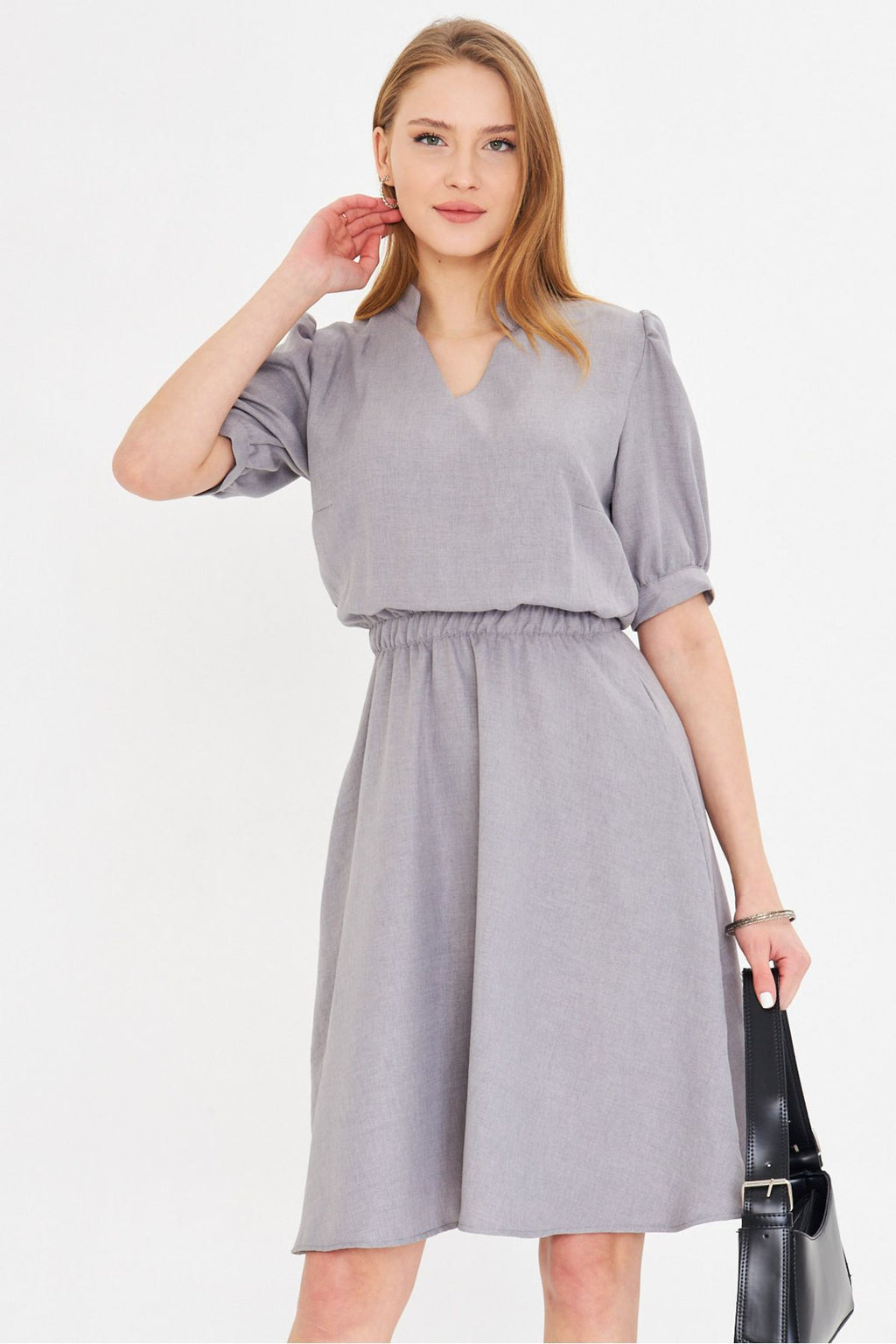 Woman Gray V-Yaka Waist Waist Tire Short Sleeve Clash Dress ARM-25Y001001