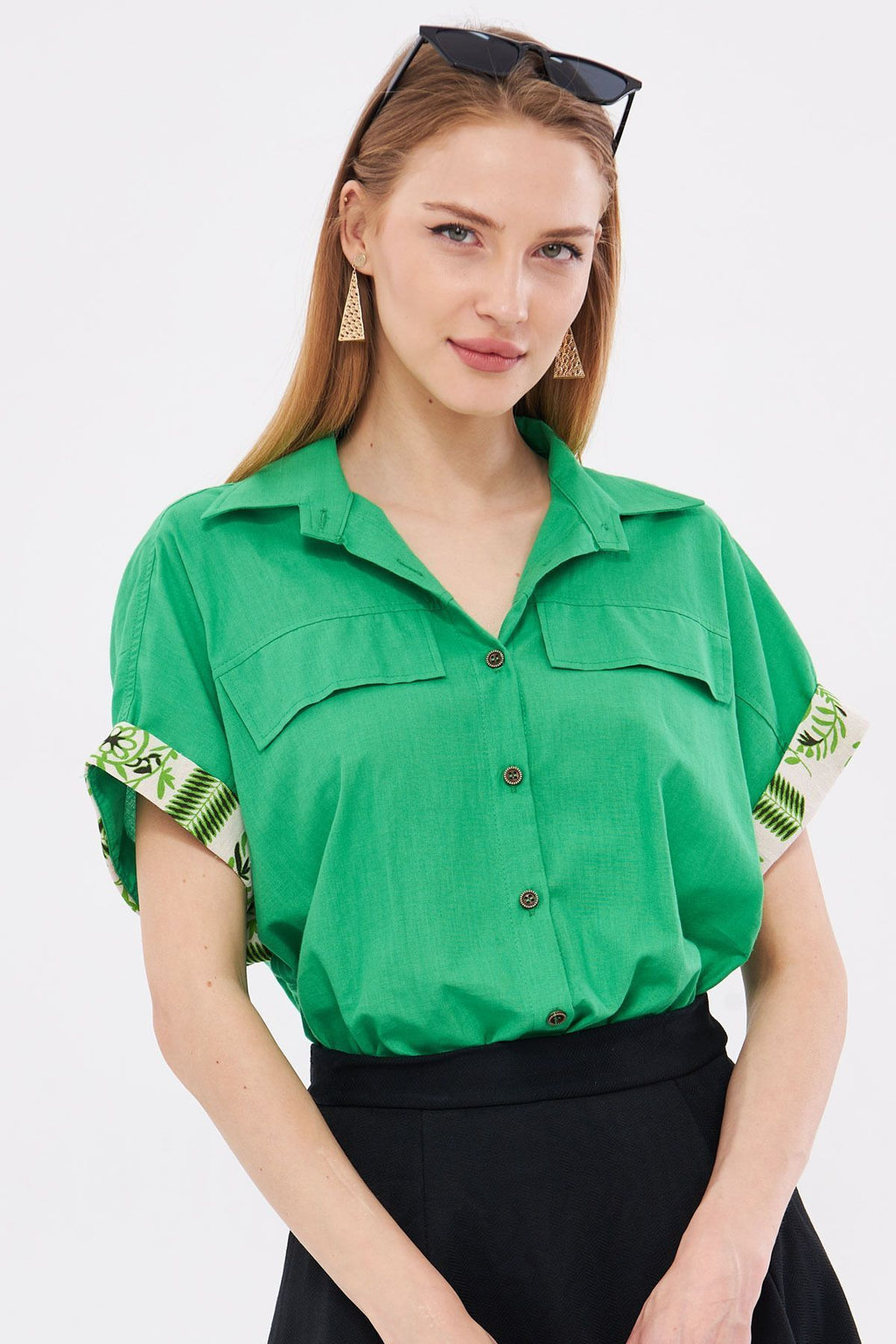 Woman Green Oversize double arm detailed shirt ARM-24Y001075