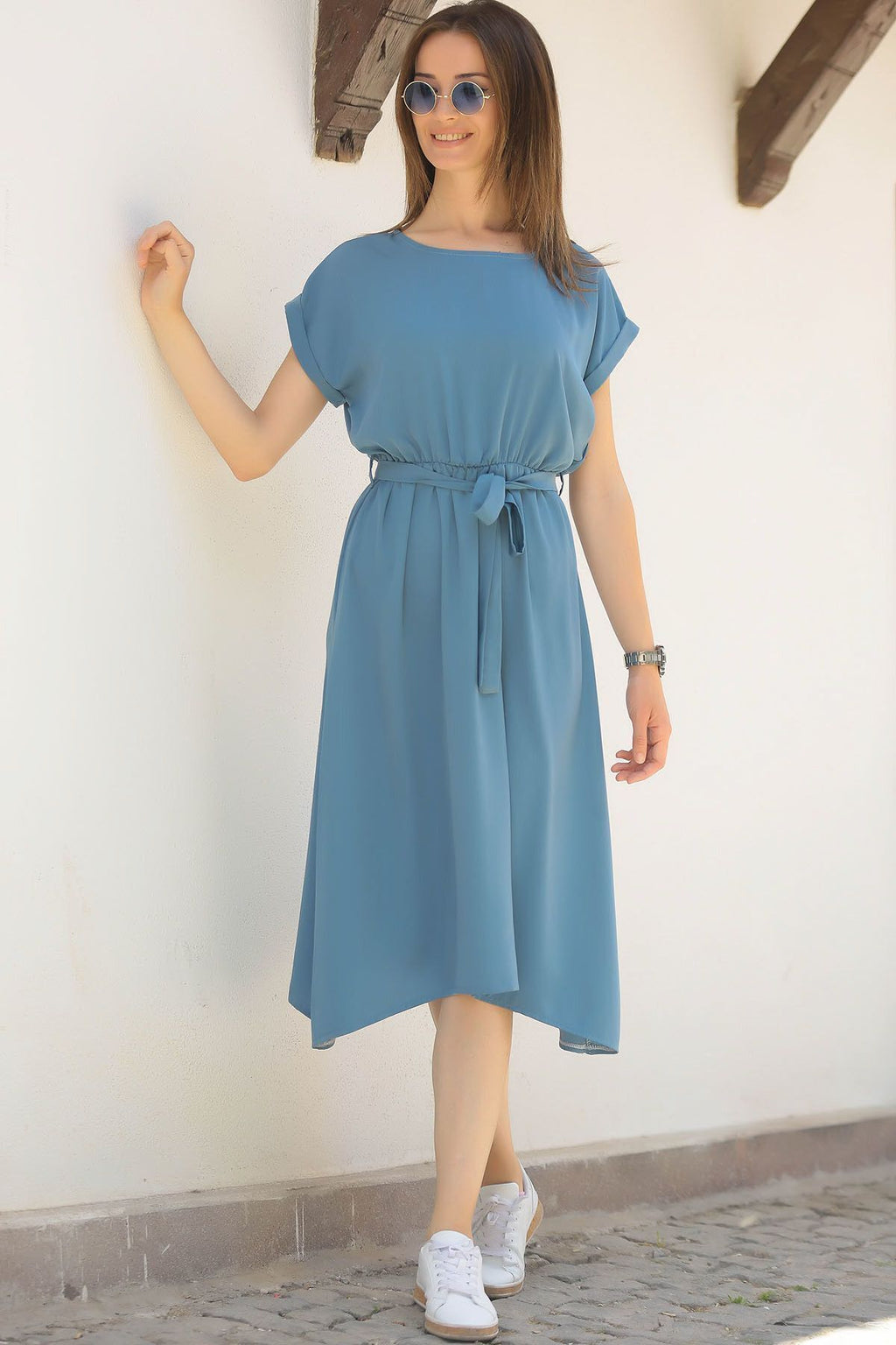 Woman Indigo Waist Tireful Dress Arm-18y001120