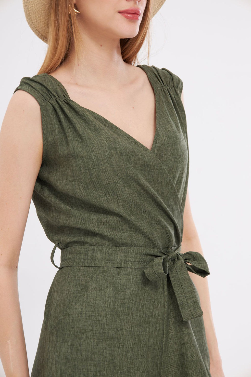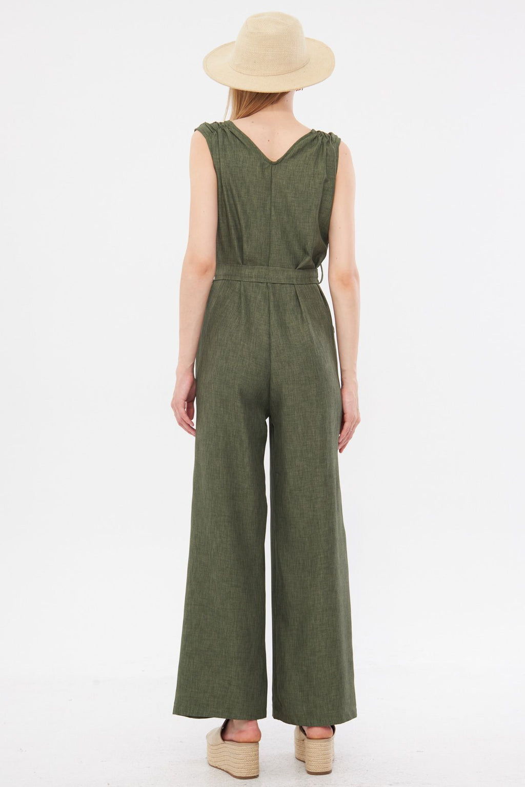Woman Khaki Cruve Collar Shoulder Shoulder Tire Detailed Red V Born Long Tulum ARM-24Y001049