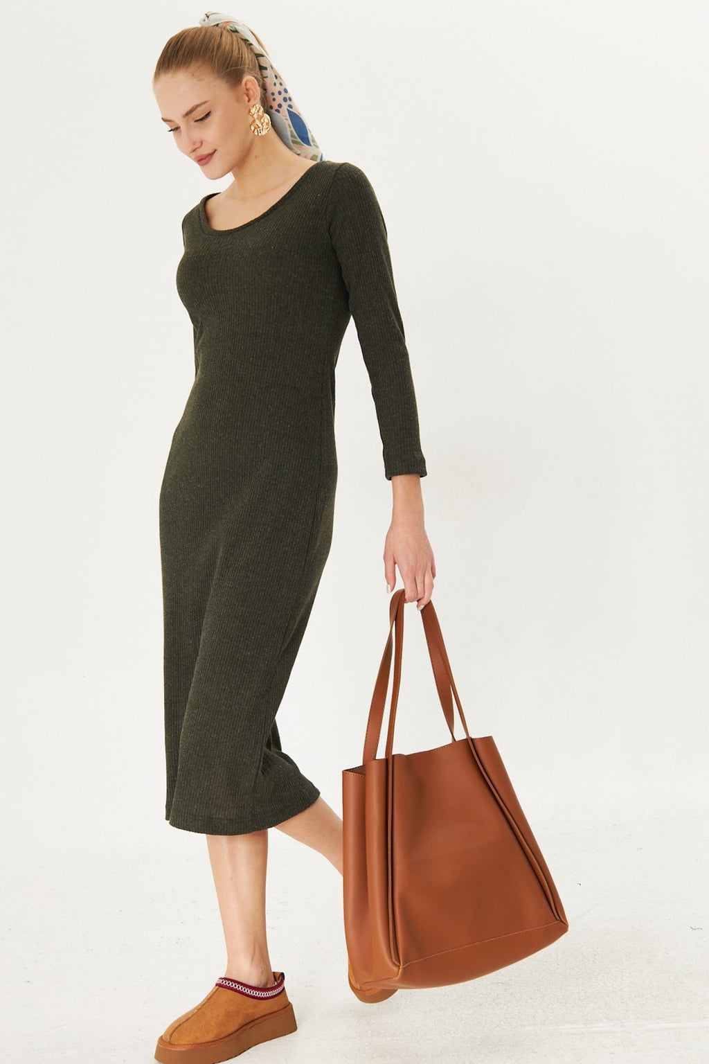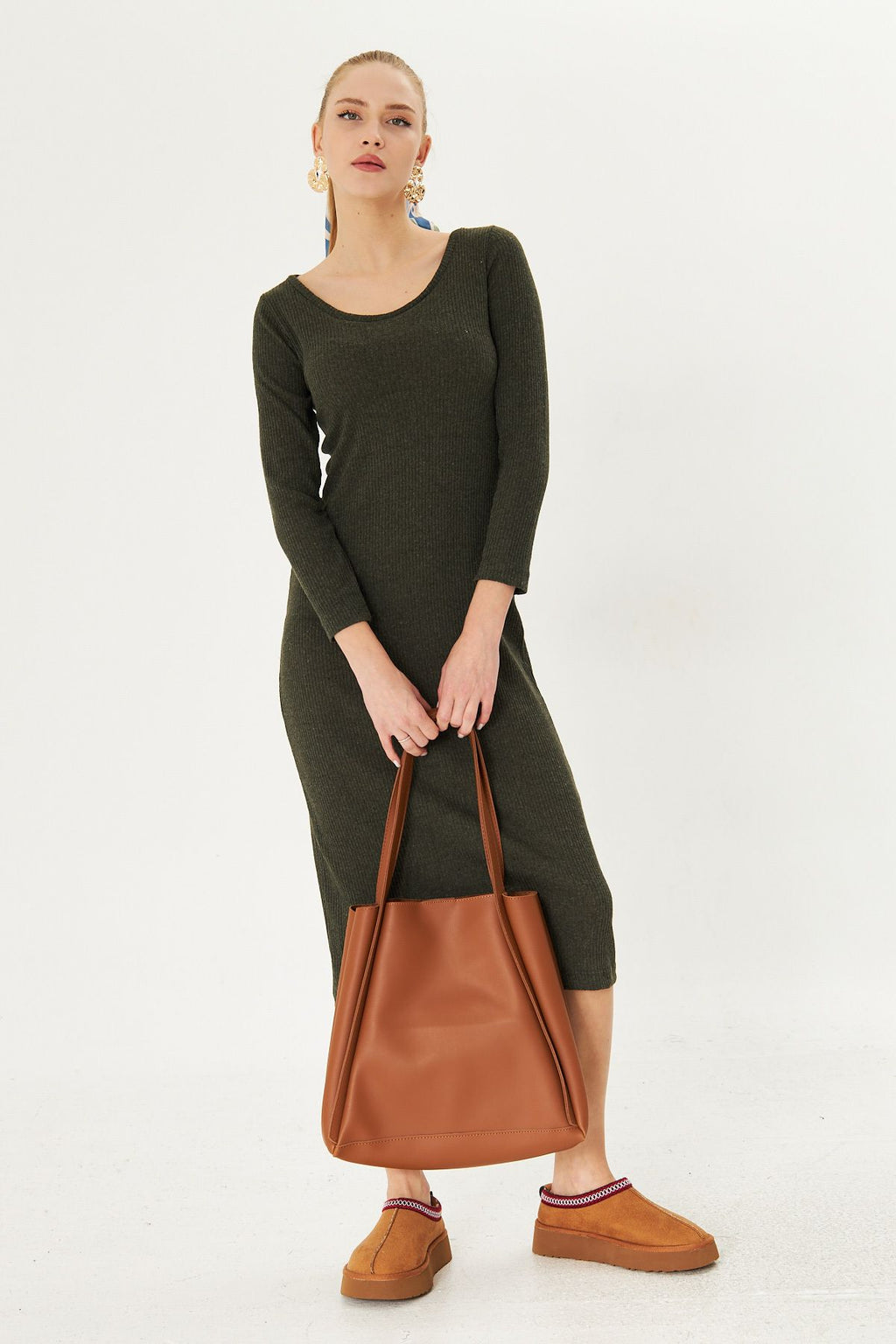 Woman Khaki Long Kashkorse Dress ARM-24K001028