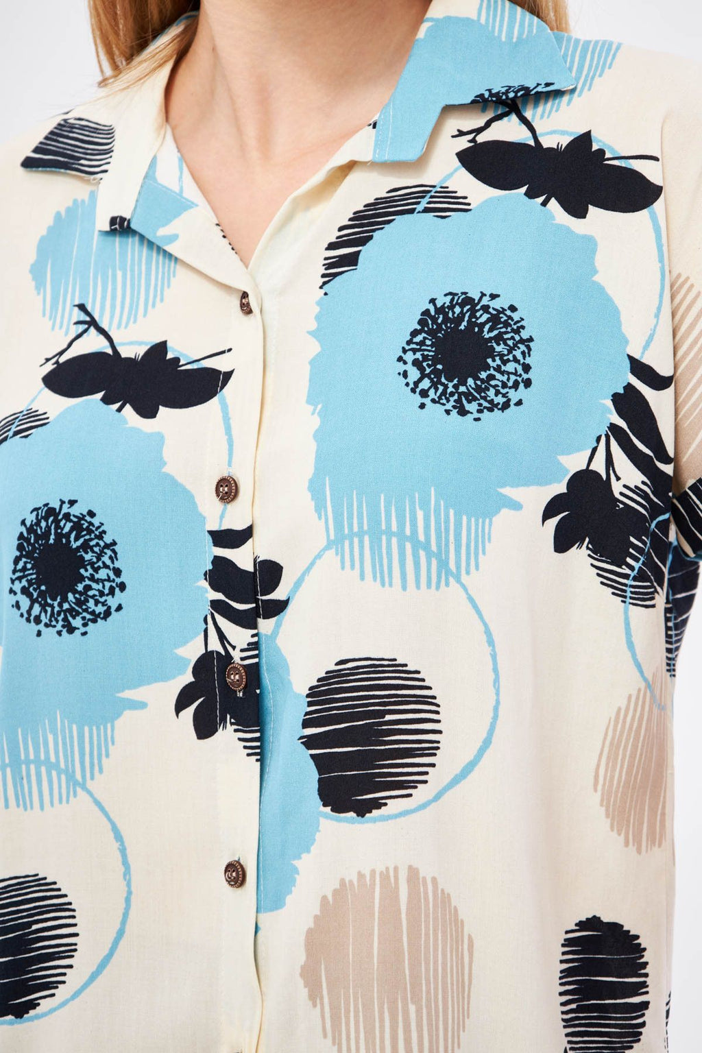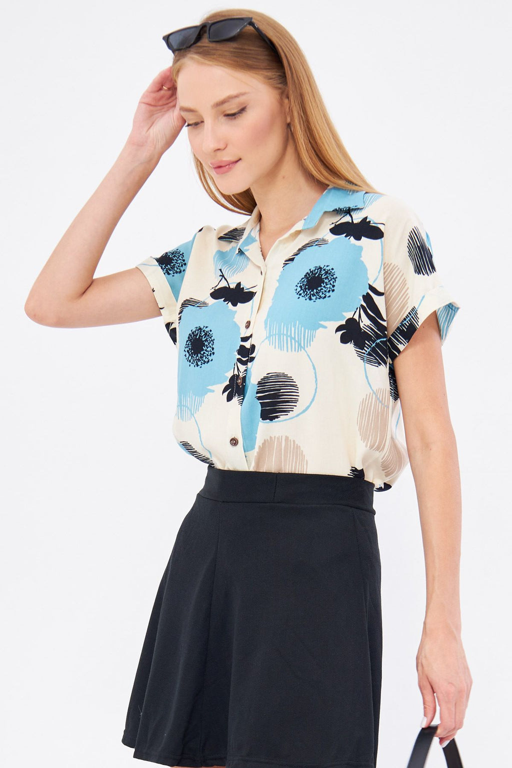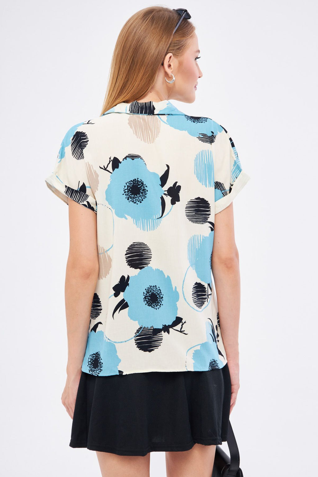 Woman Light Blue Patterned Short Arm Shirt ARM-221052