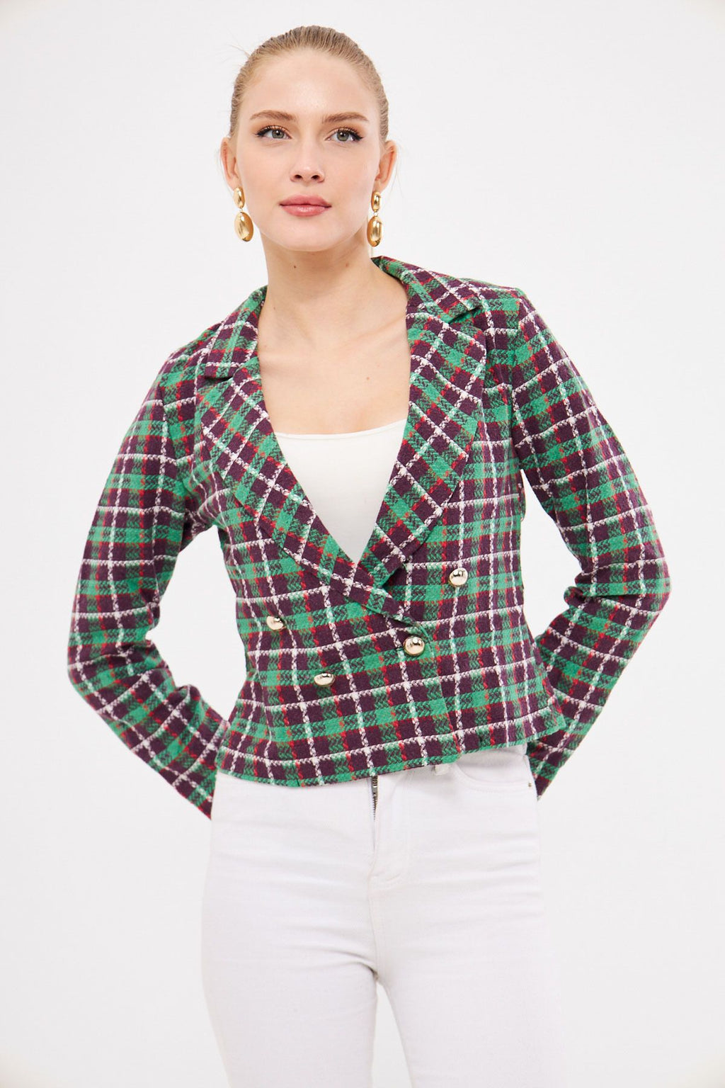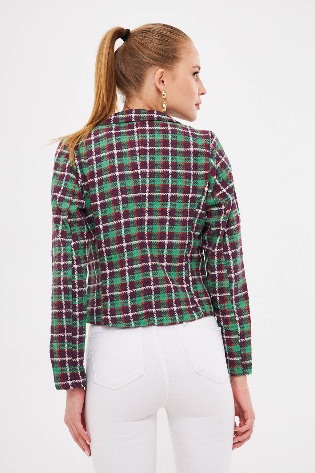 Woman Light Green Cruve Yaka Tüvit Crop Jacket ARM-24K001014