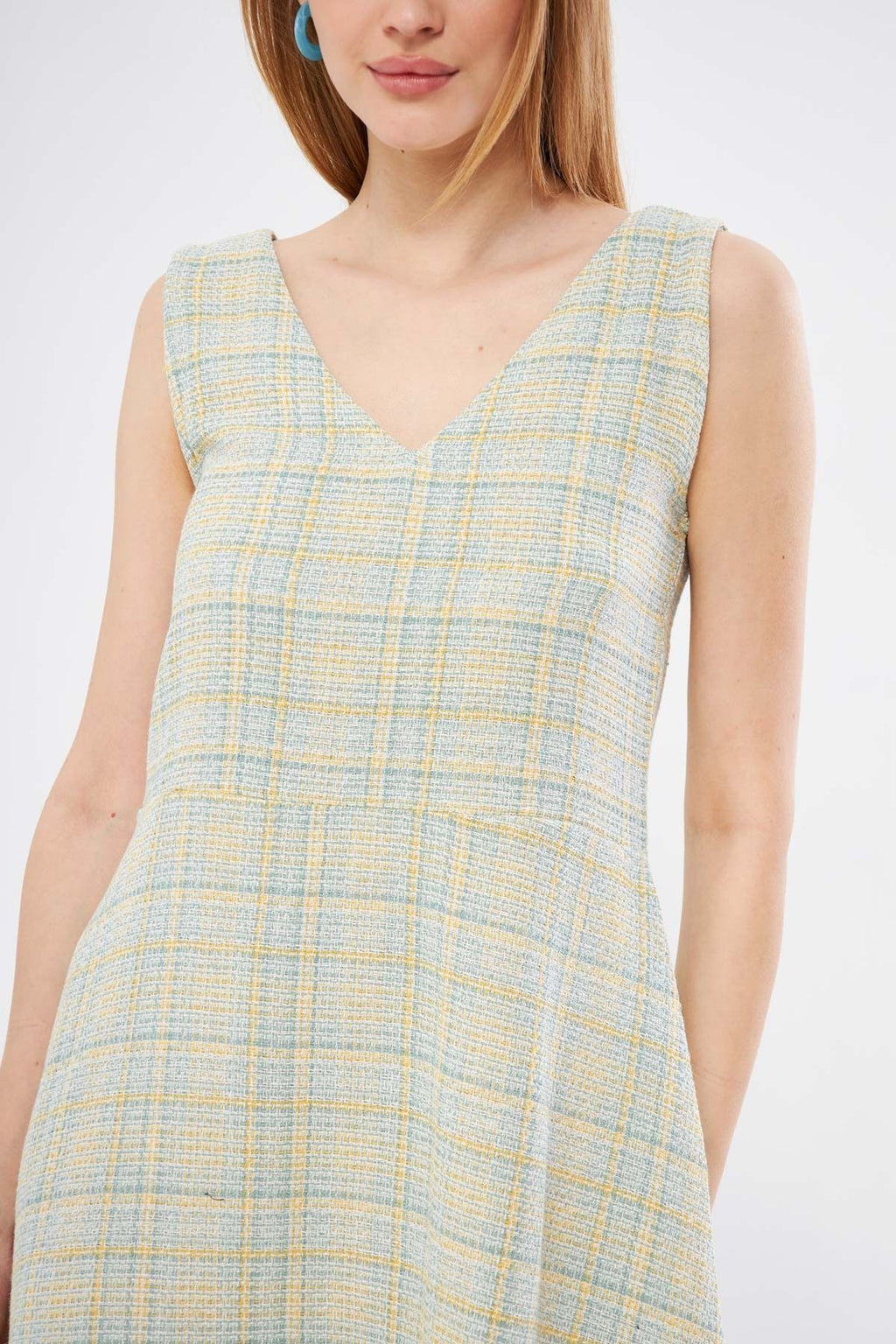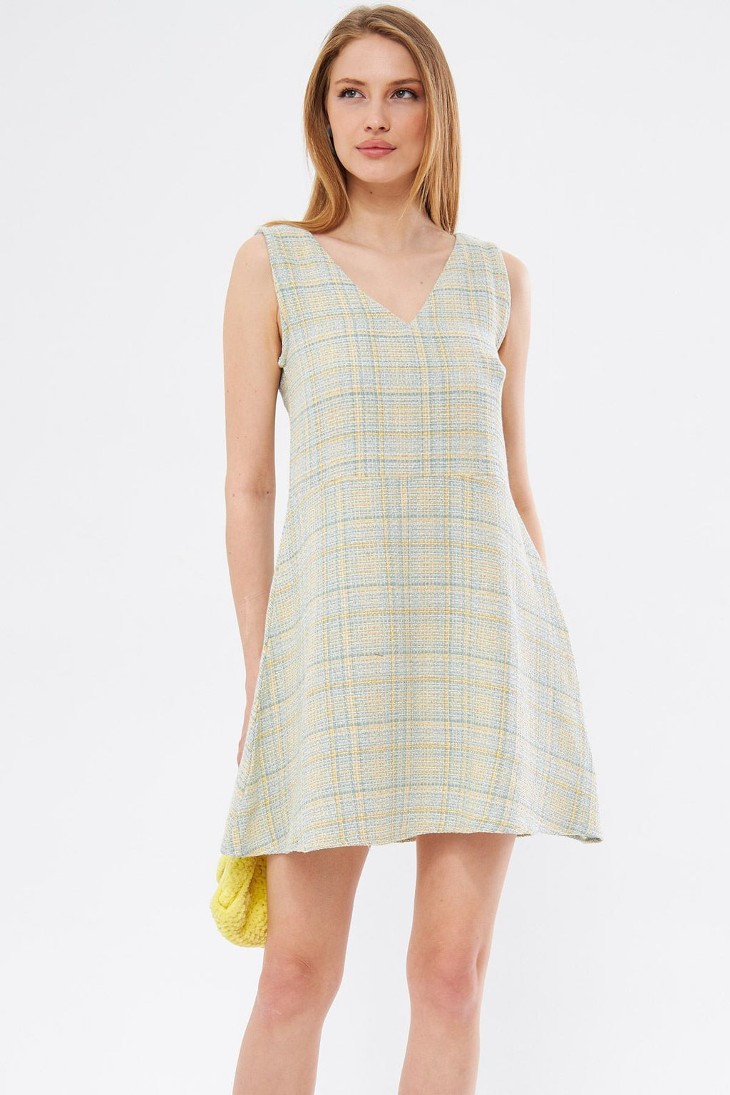Woman Light Yellow Tüvit Front Rear V-Neck Sleeveless Clash Mini Dress ARM-24K001073