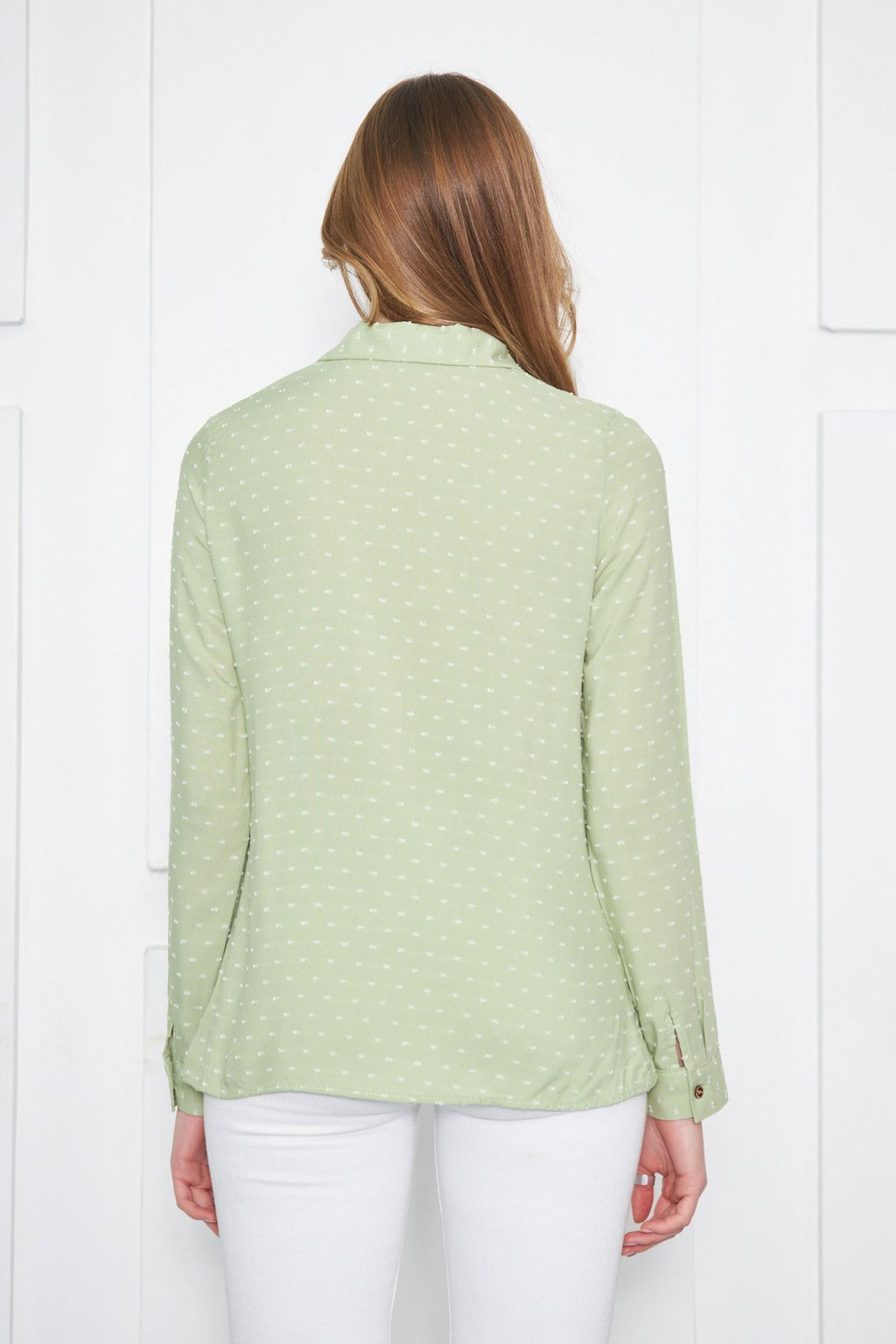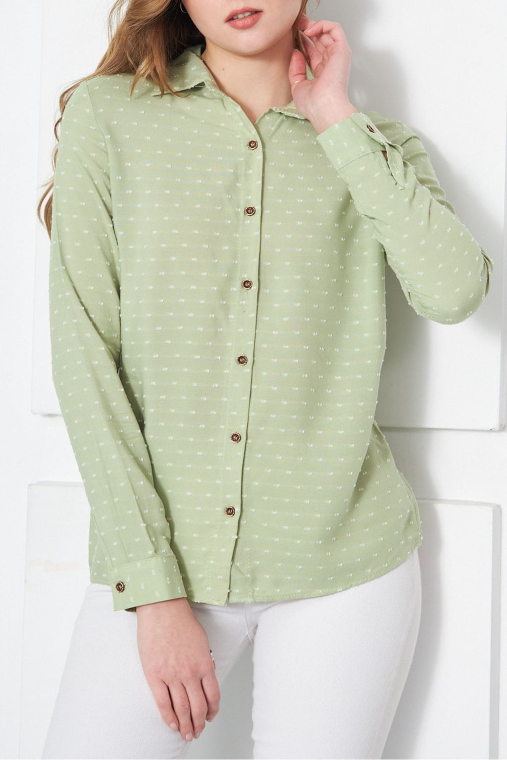 Woman Long Arm Shirt with Light Green Patterned ARM-24K001023