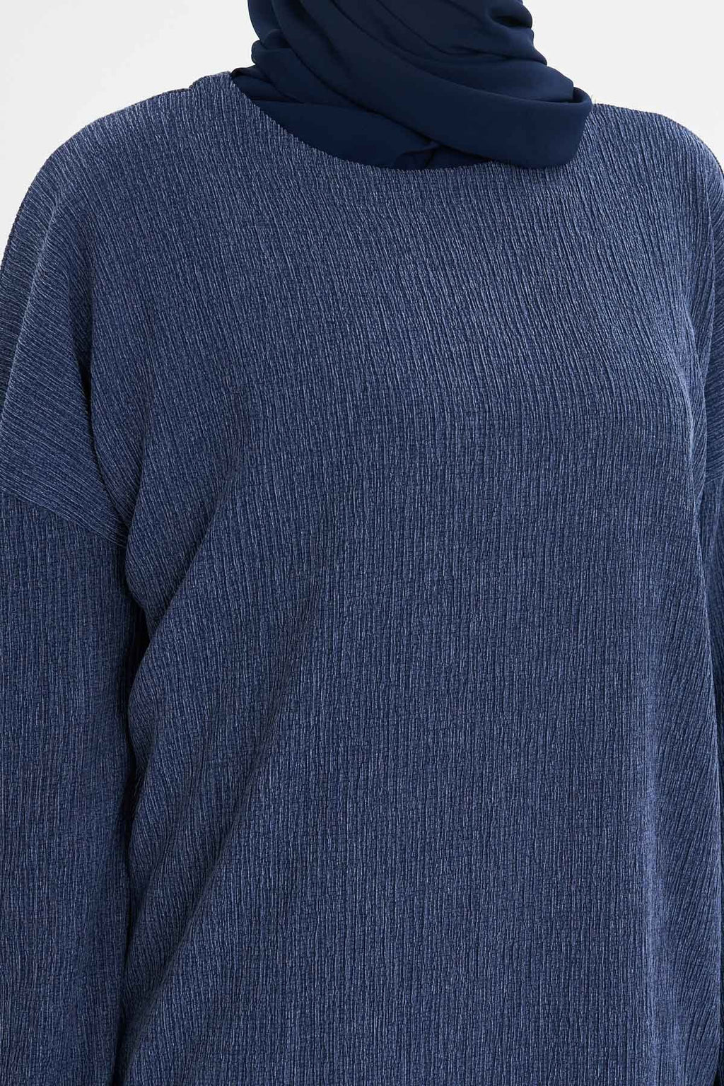 Woman Navy blue zero collar sleeve tire as well as slit pants hijab double set ARM-25K001109
