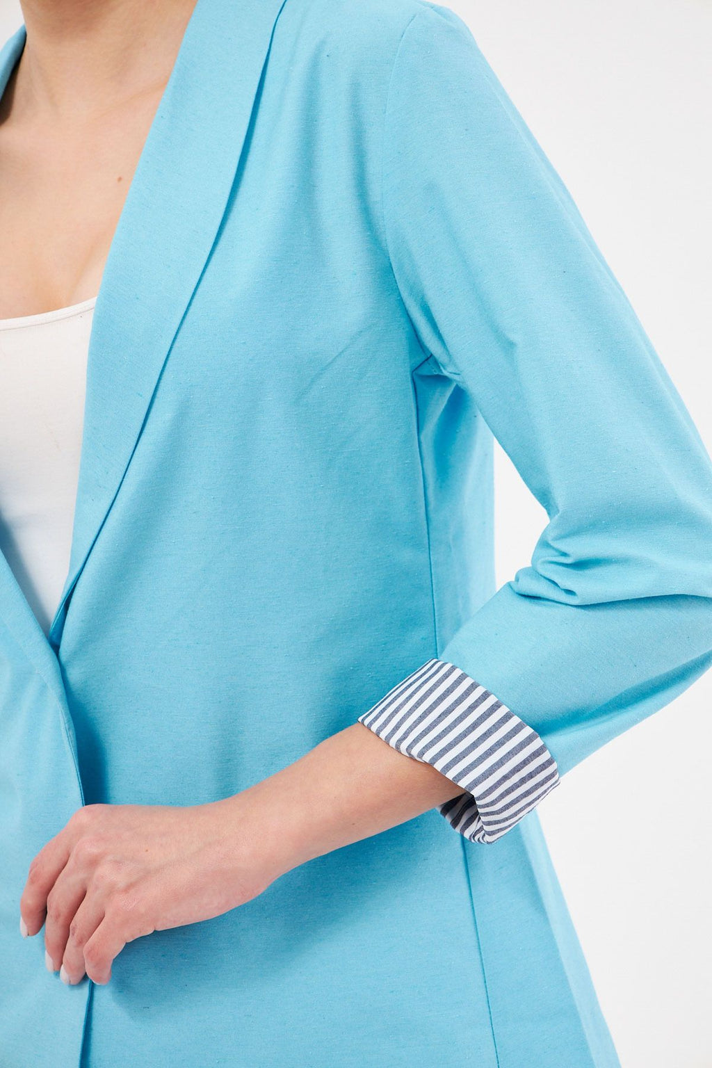 Woman Open Turquoise Sleeve In intra-button with single button jacket ARM-22K001122
