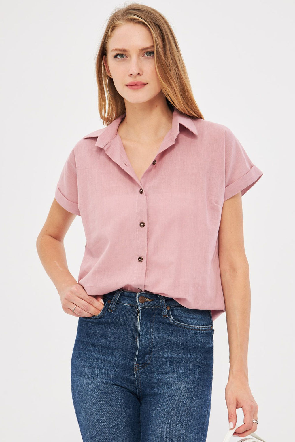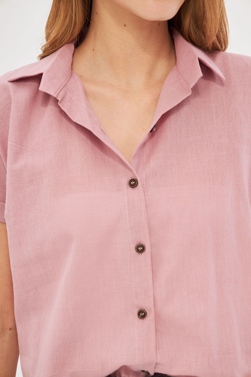Woman Pink Short Sleeve Linen Shirt ARM-24Y001038