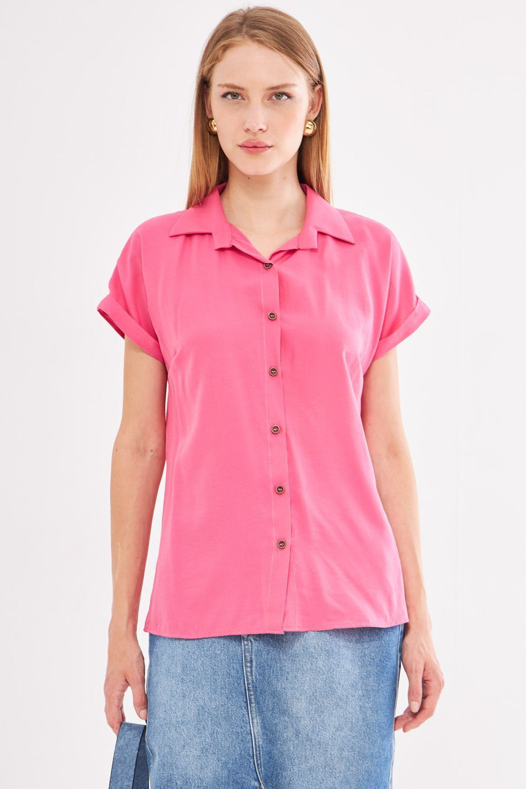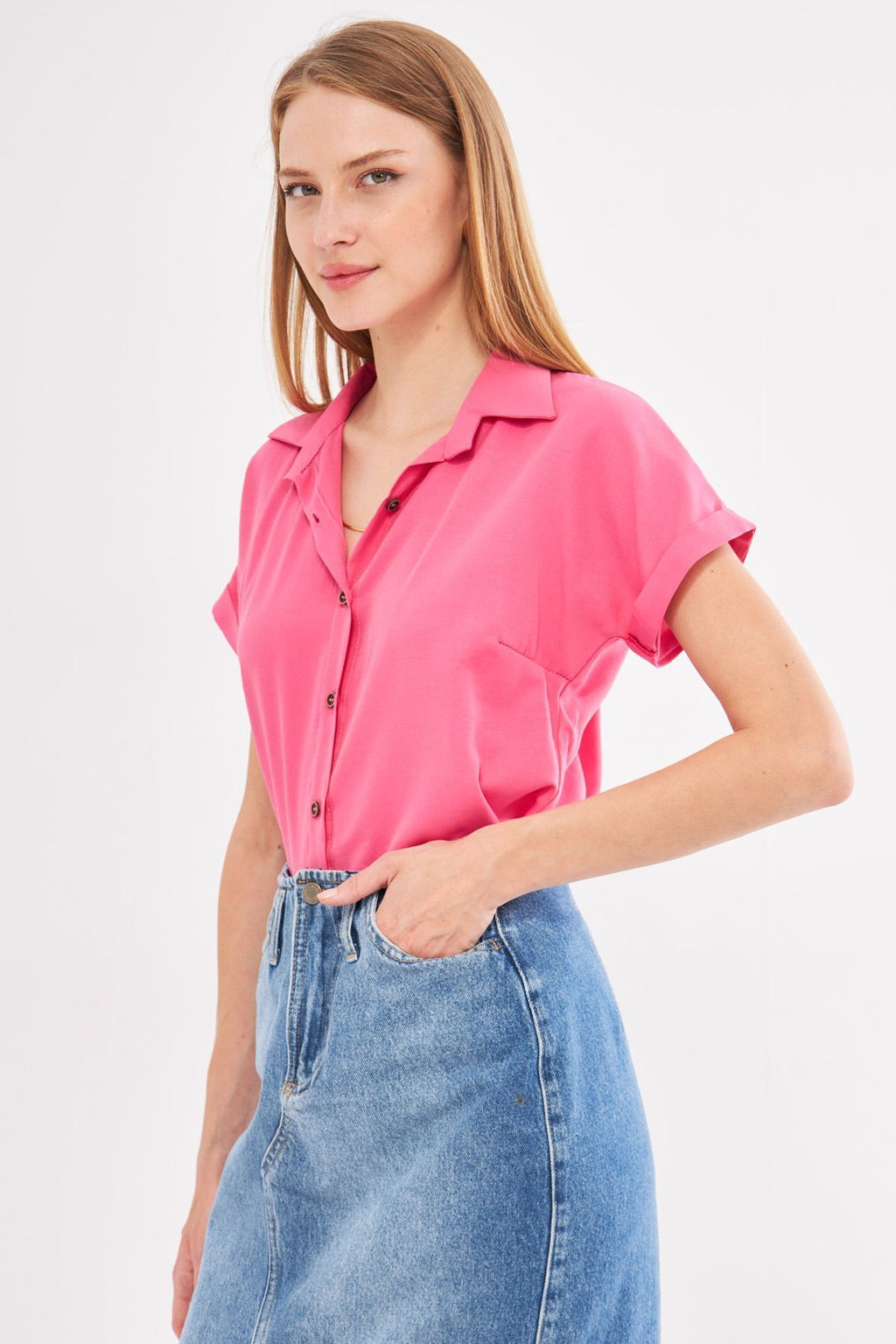 Woman Pink Short Sleeve Shirt ARM-19Y001065