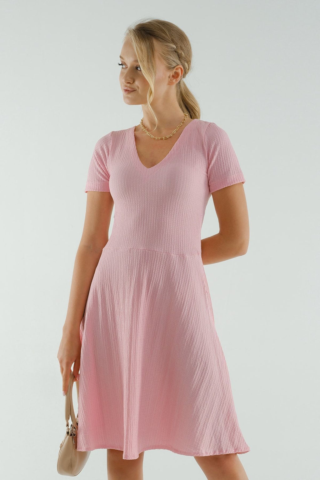 Woman Powder V-Neck Short Sleeve Clash Dress ARM-23Y001081