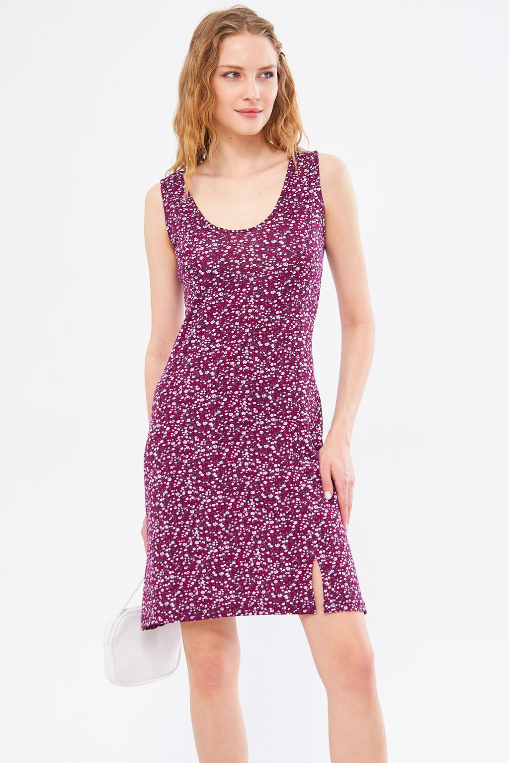 Woman purple ikosidio dress sitting on the body sleeveless front slits with mini size ARM-24Y001045