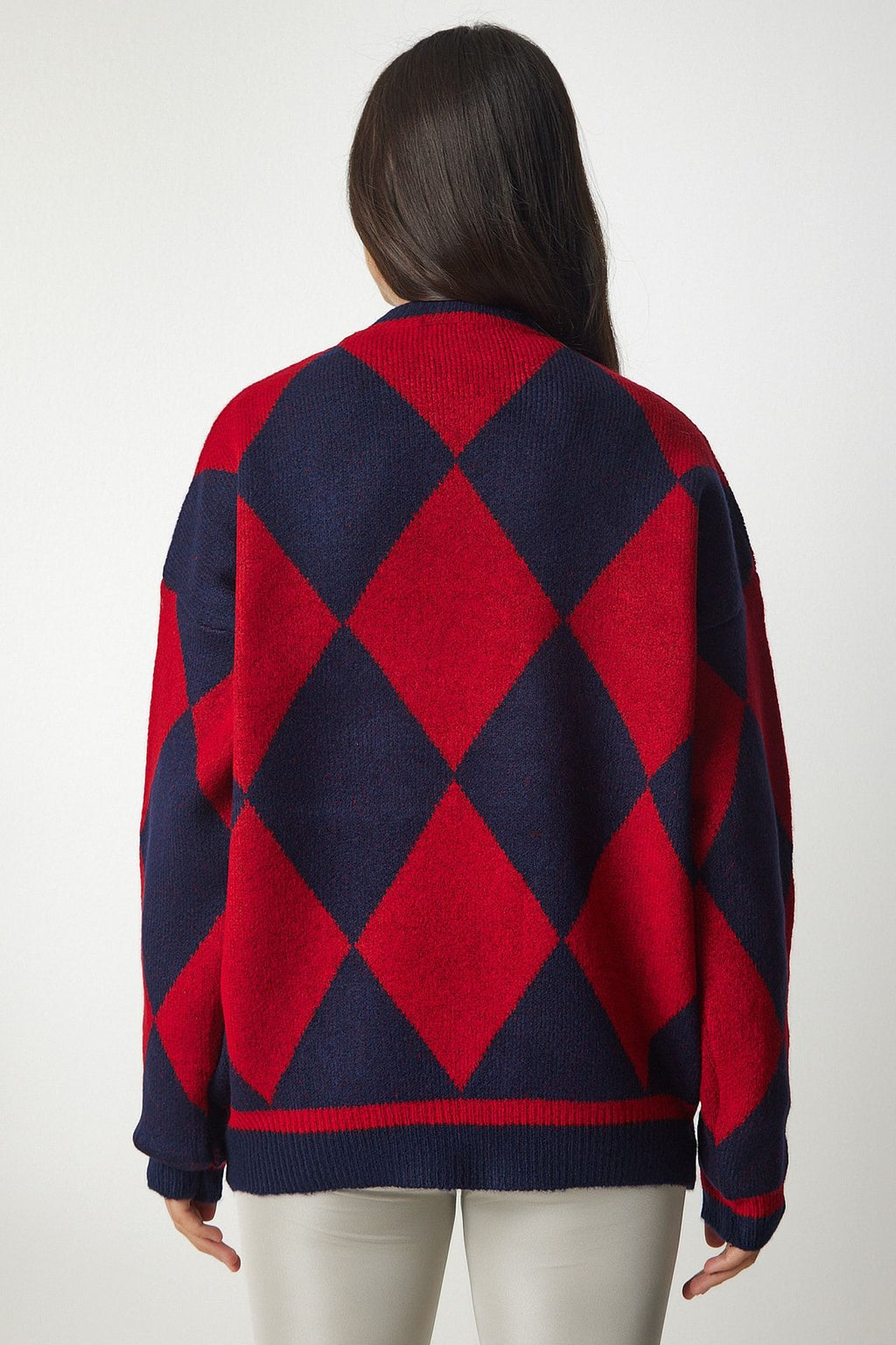 Woman Red Baklava Patterned Oversize Knitwear Kazakh YY00161