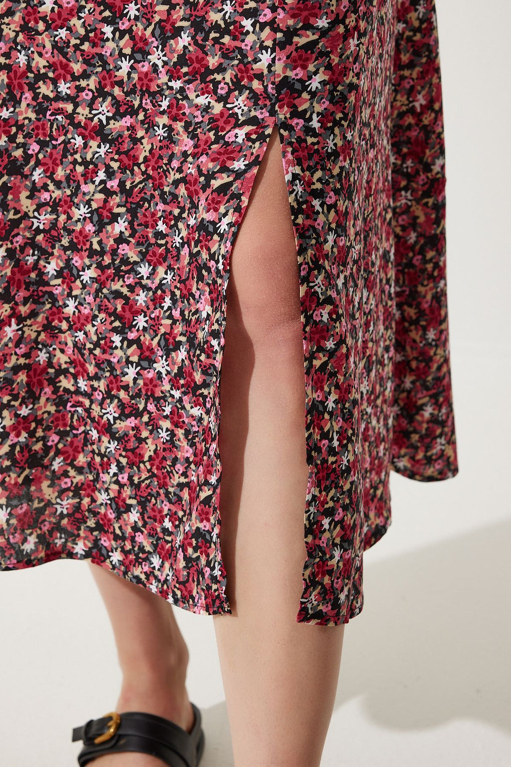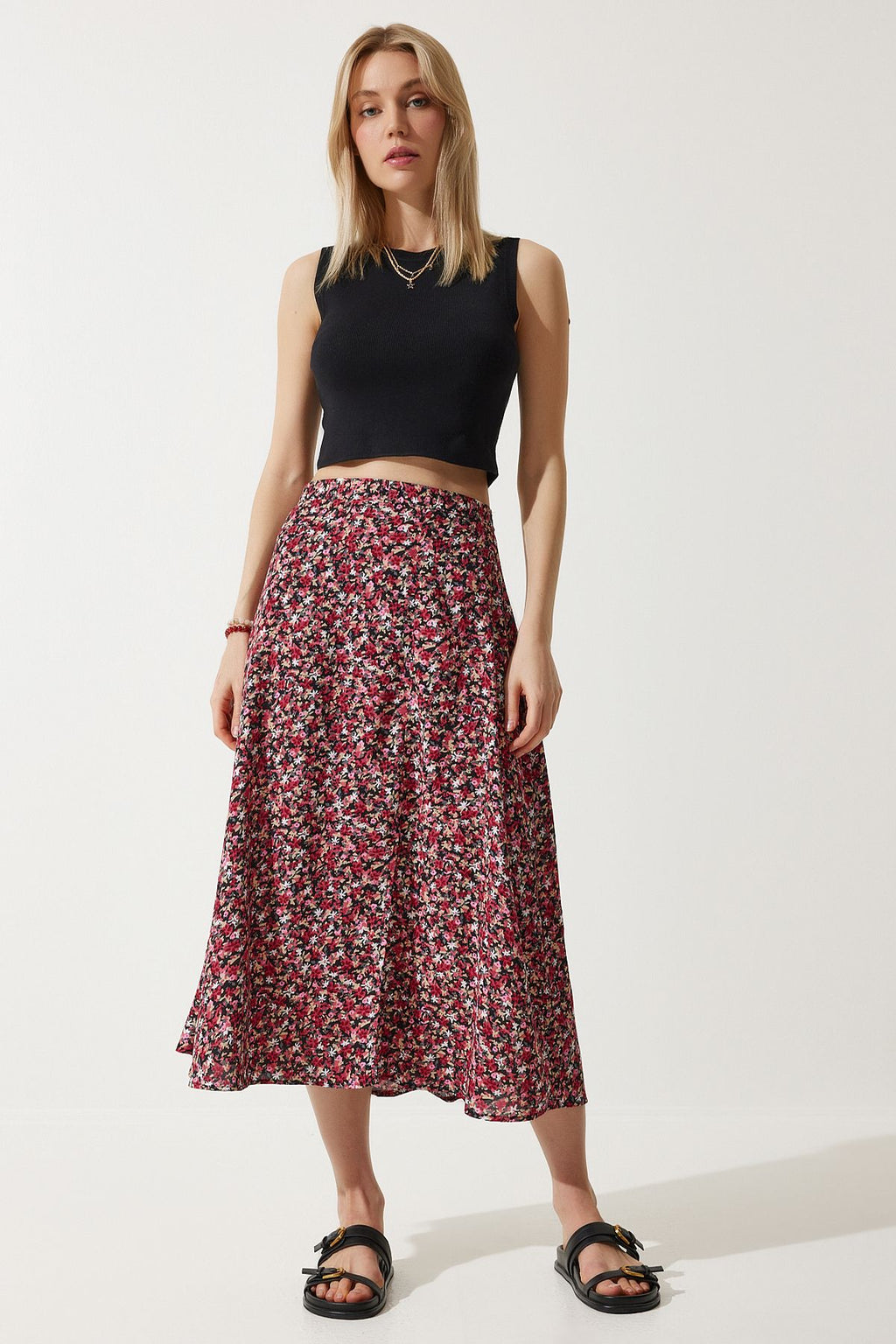 Woman Red Black Flower Swittish Summer Viscose Skirt MX00165