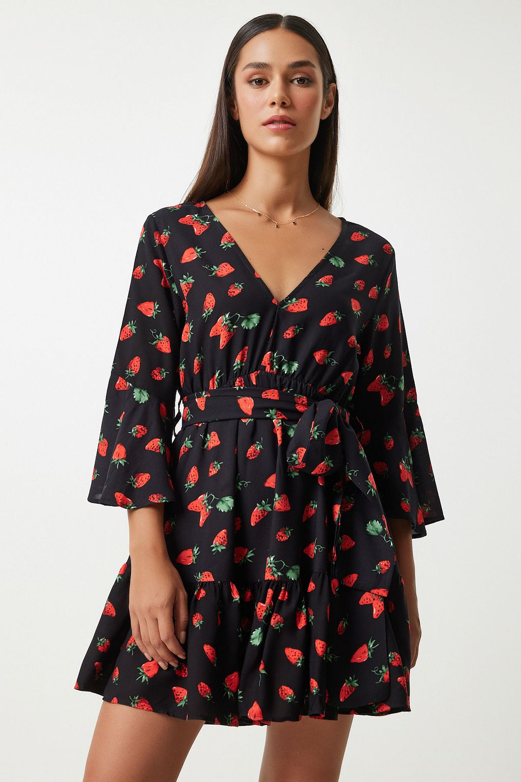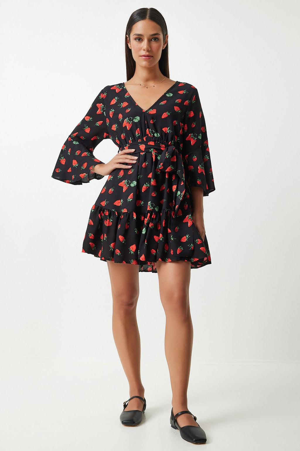 Woman Red Black Patterned Summer Viscon Clash Dress FN03202