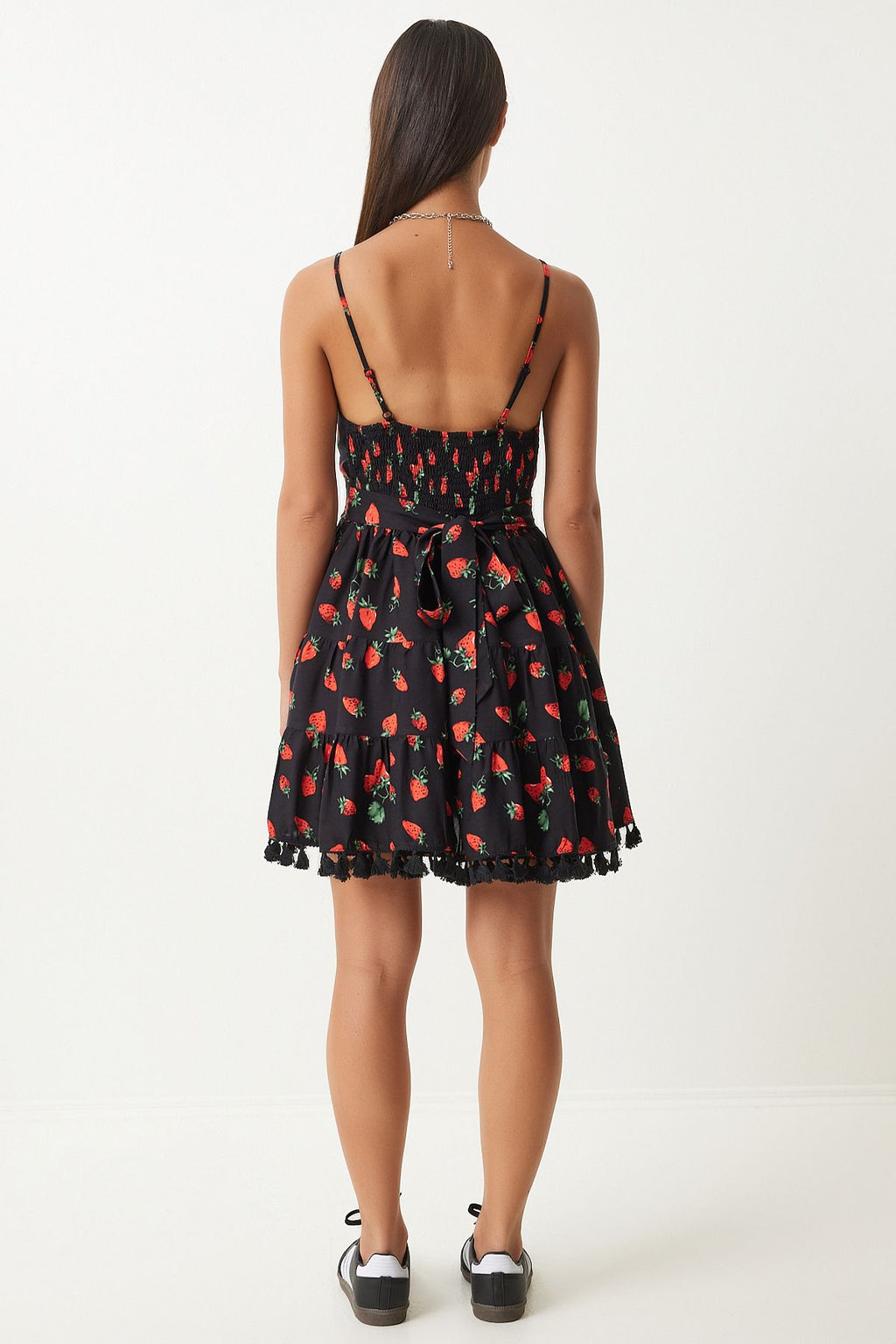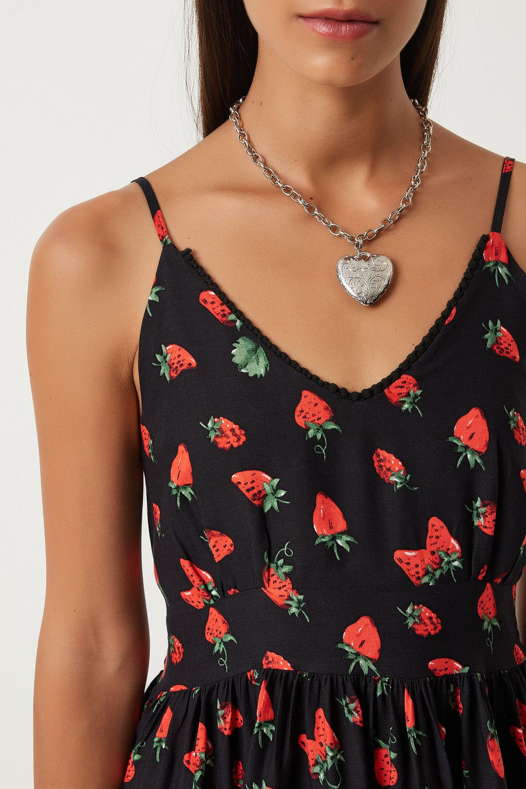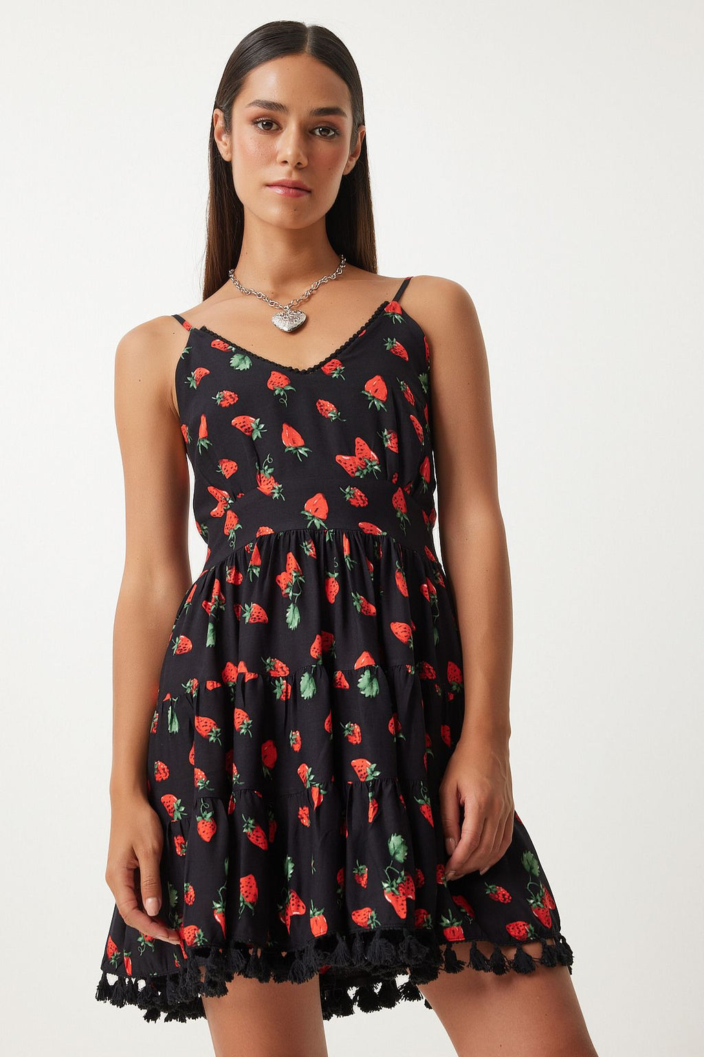 Woman Red Black Patterned Summer Viscose Dress FN03203