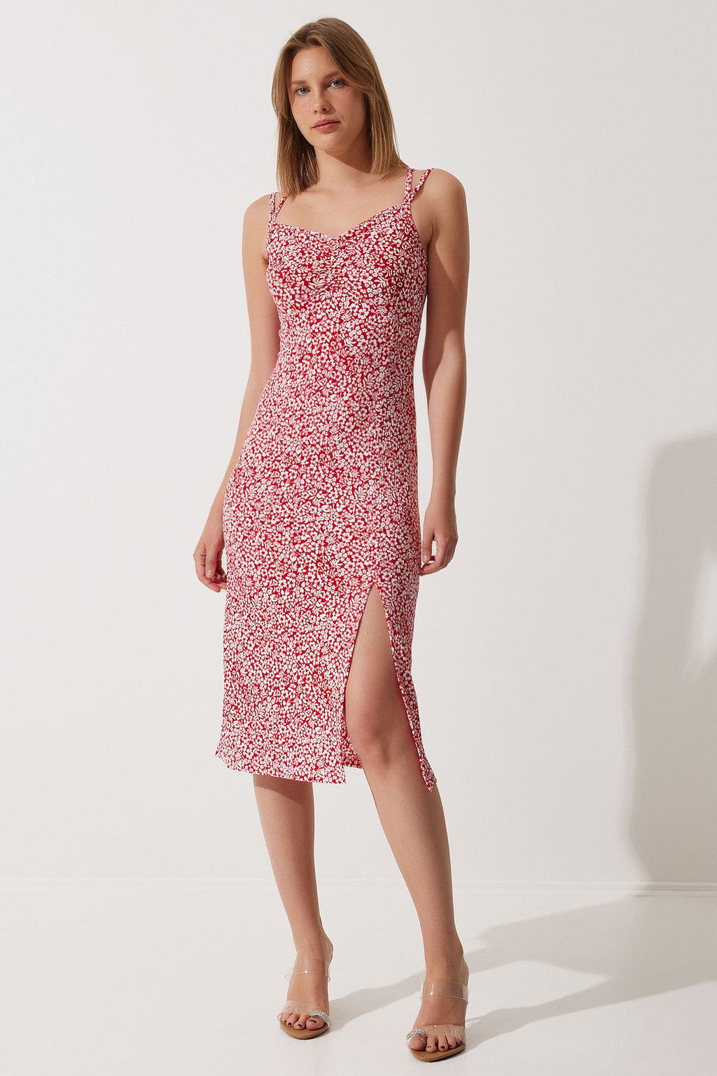 Woman Red Double Hanger Patterned Knitting Dress MC00262