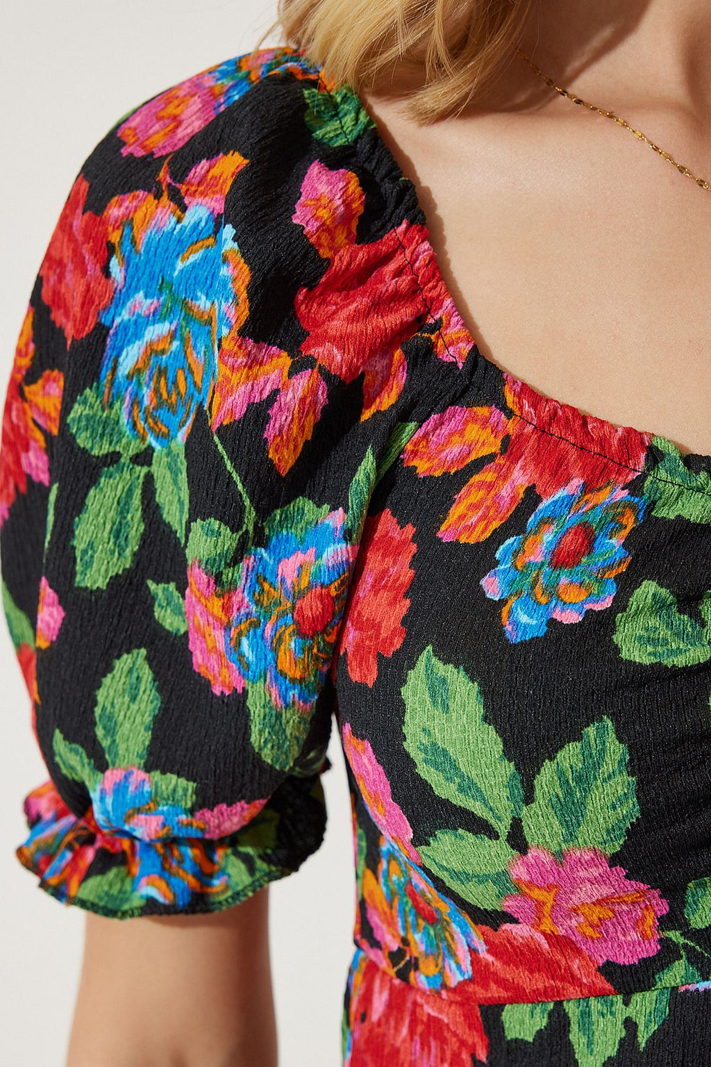 Woman Red Elastic Carmen Yaka Summer Viscose Dress MC00172