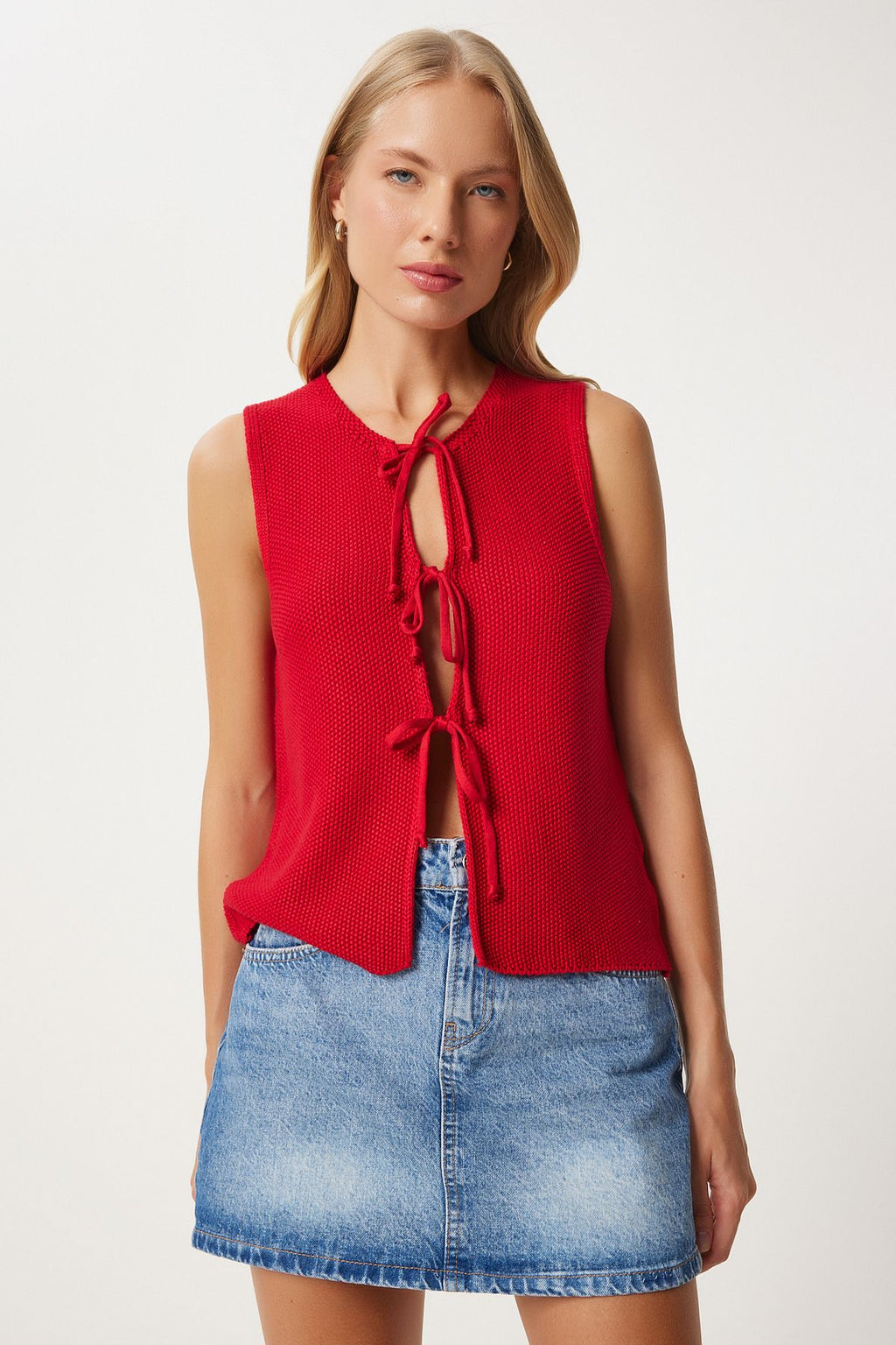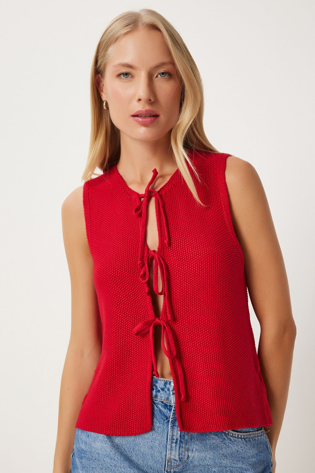 Woman Red Lacked Knitwear Vest US00923