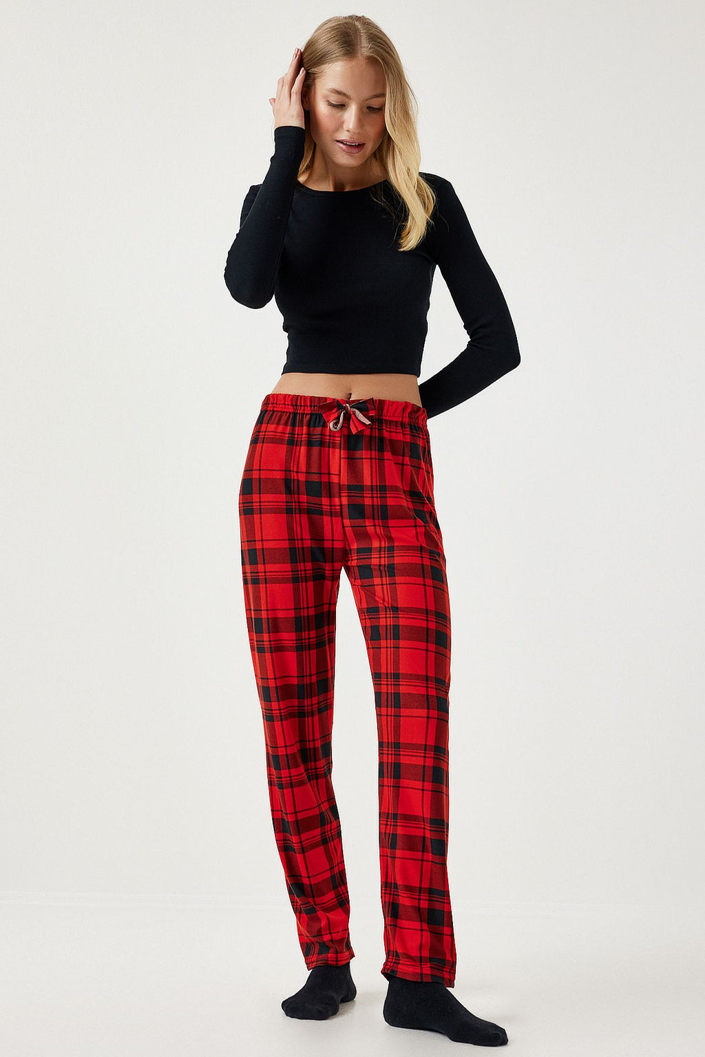 Woman Red Patterned Soft textured knitting pajamas six Ce00089