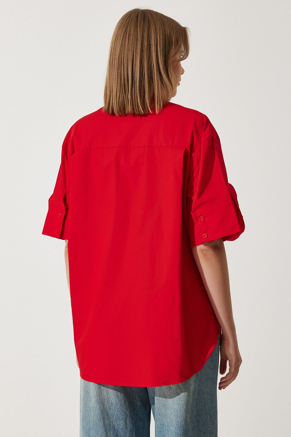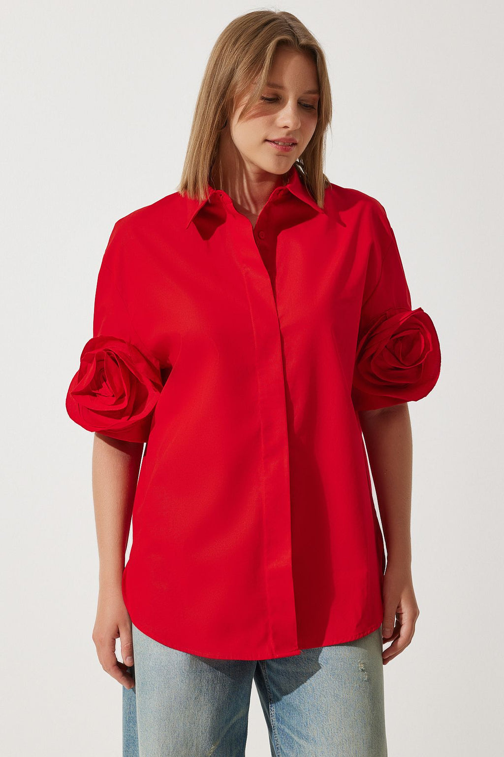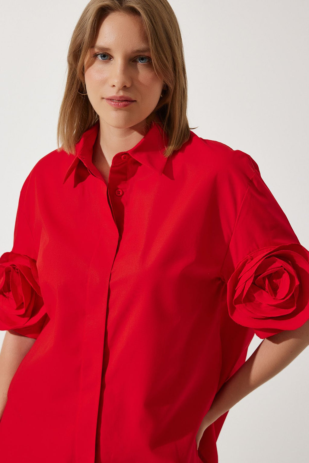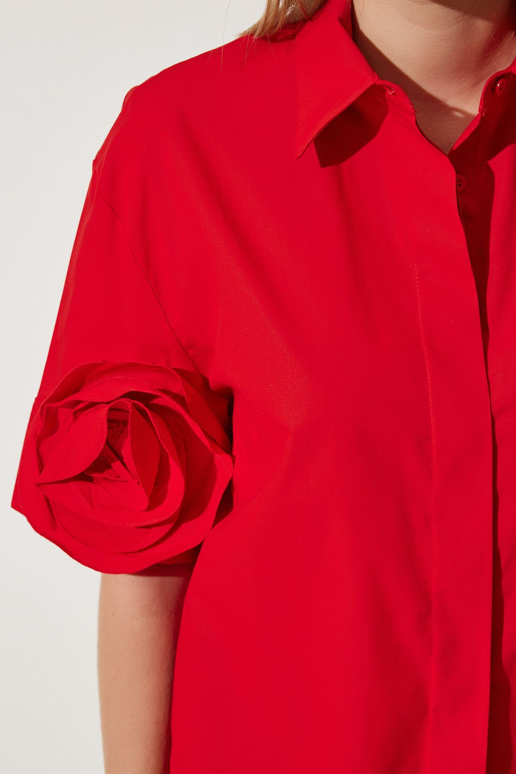 Woman Red Rose Accessory Oversize Design Cotton Premium Shirt FK00008