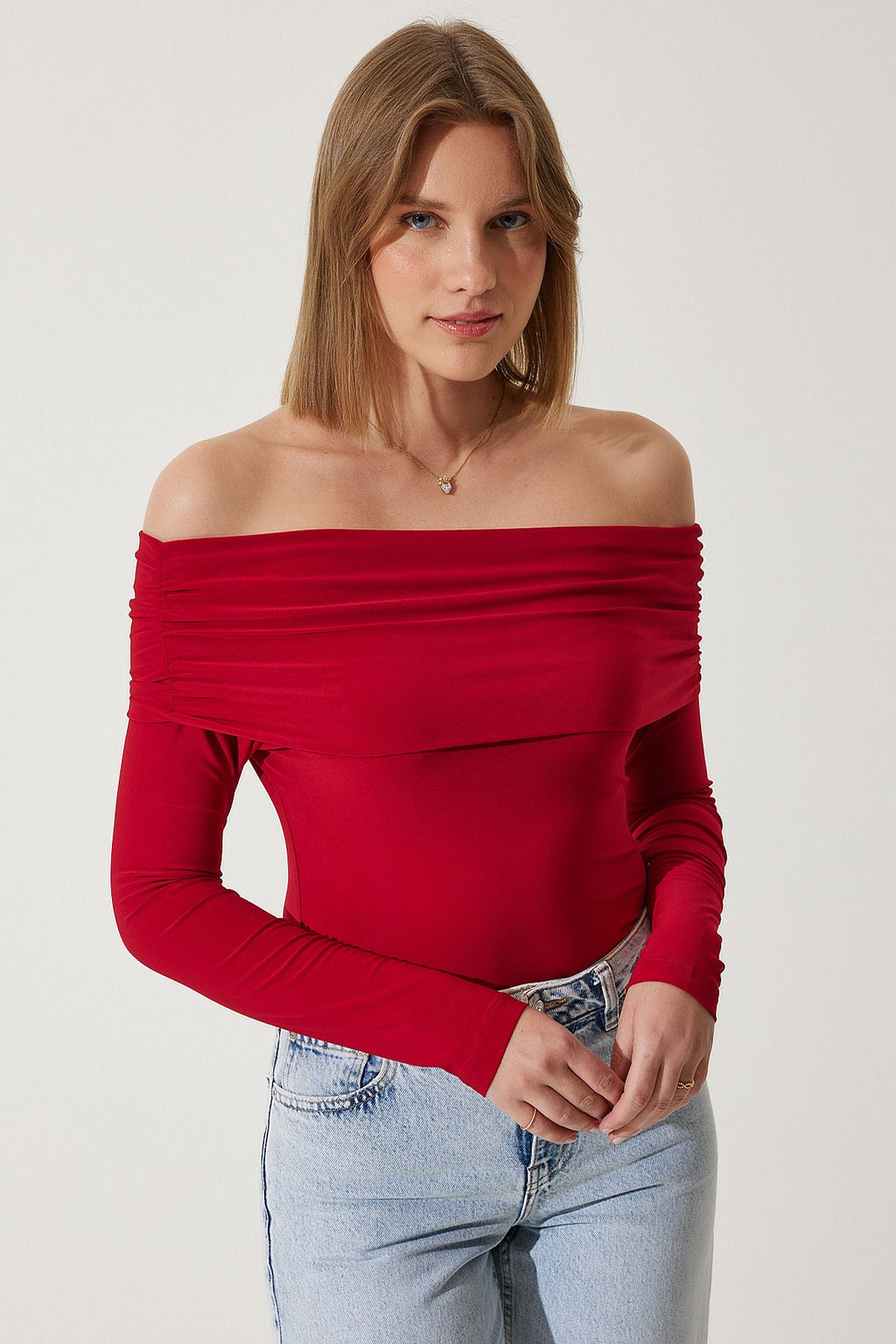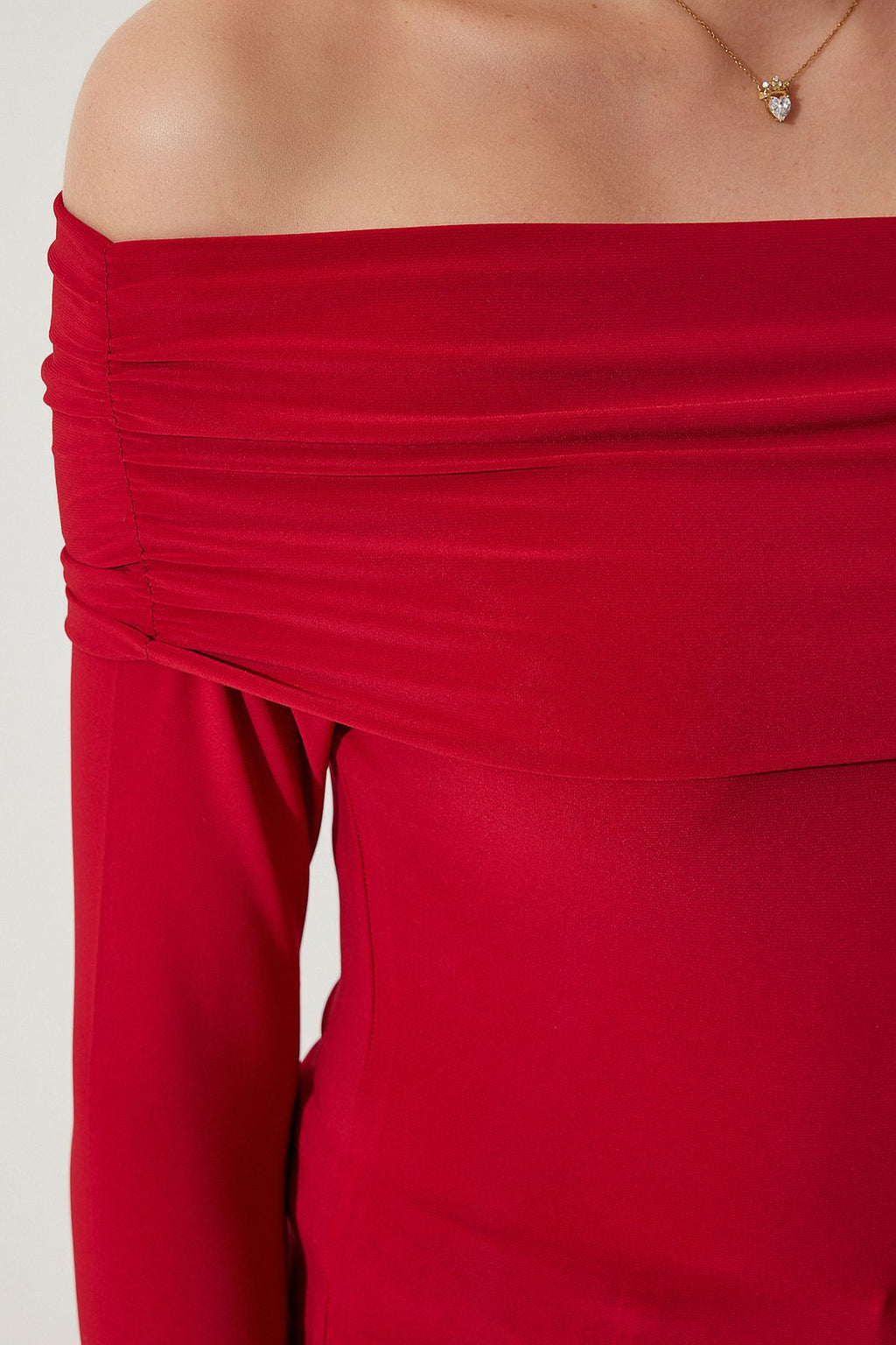 Woman Red Shoulders Open Shirring Detailed Blouse FF00161