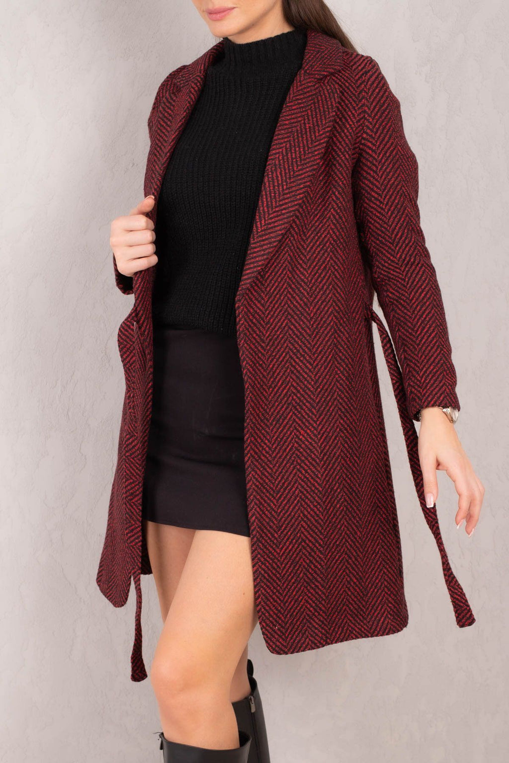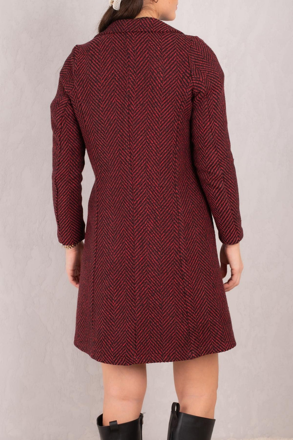 Woman Red Side Fish Pattern Pattern Long Stamp Coat ARM-24K001010