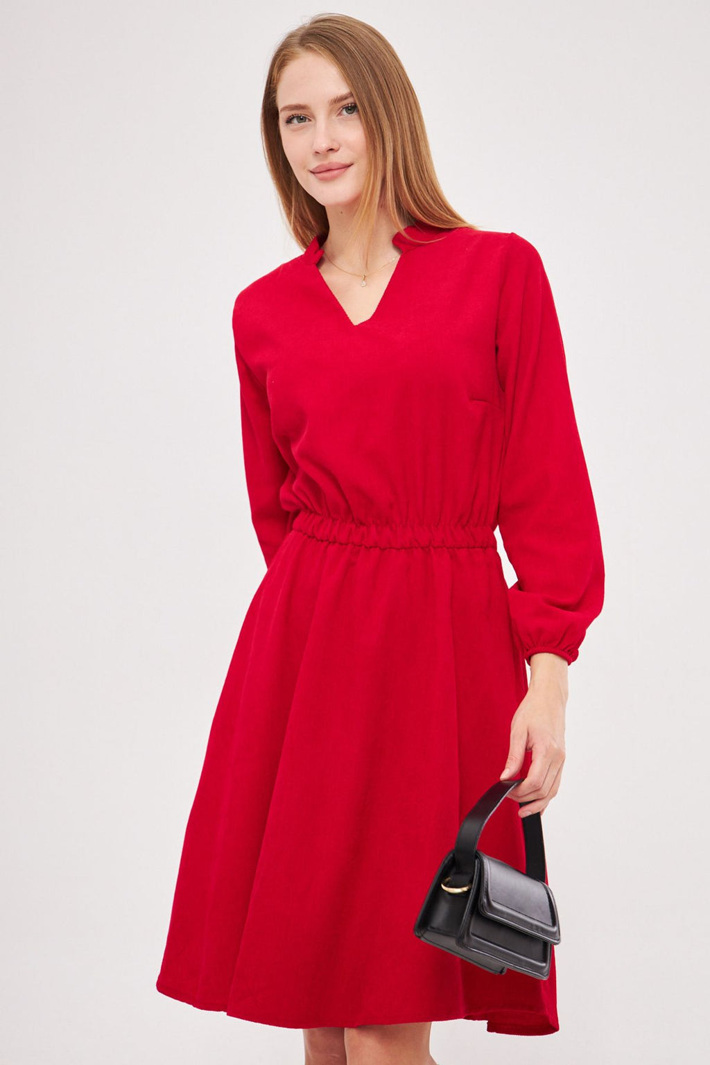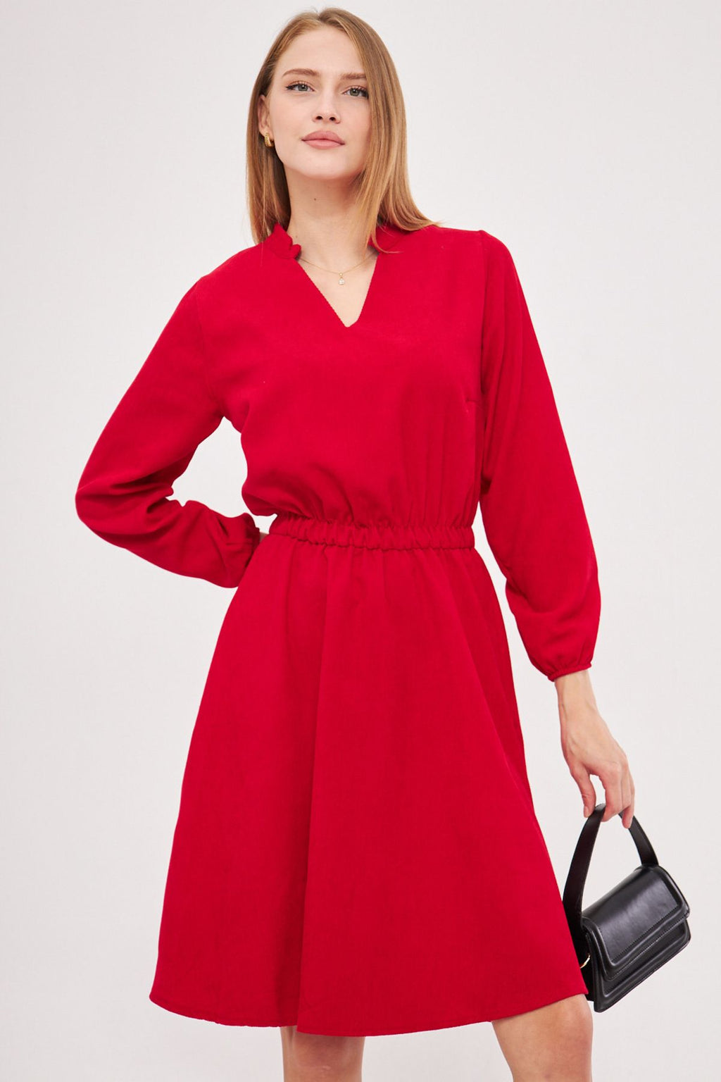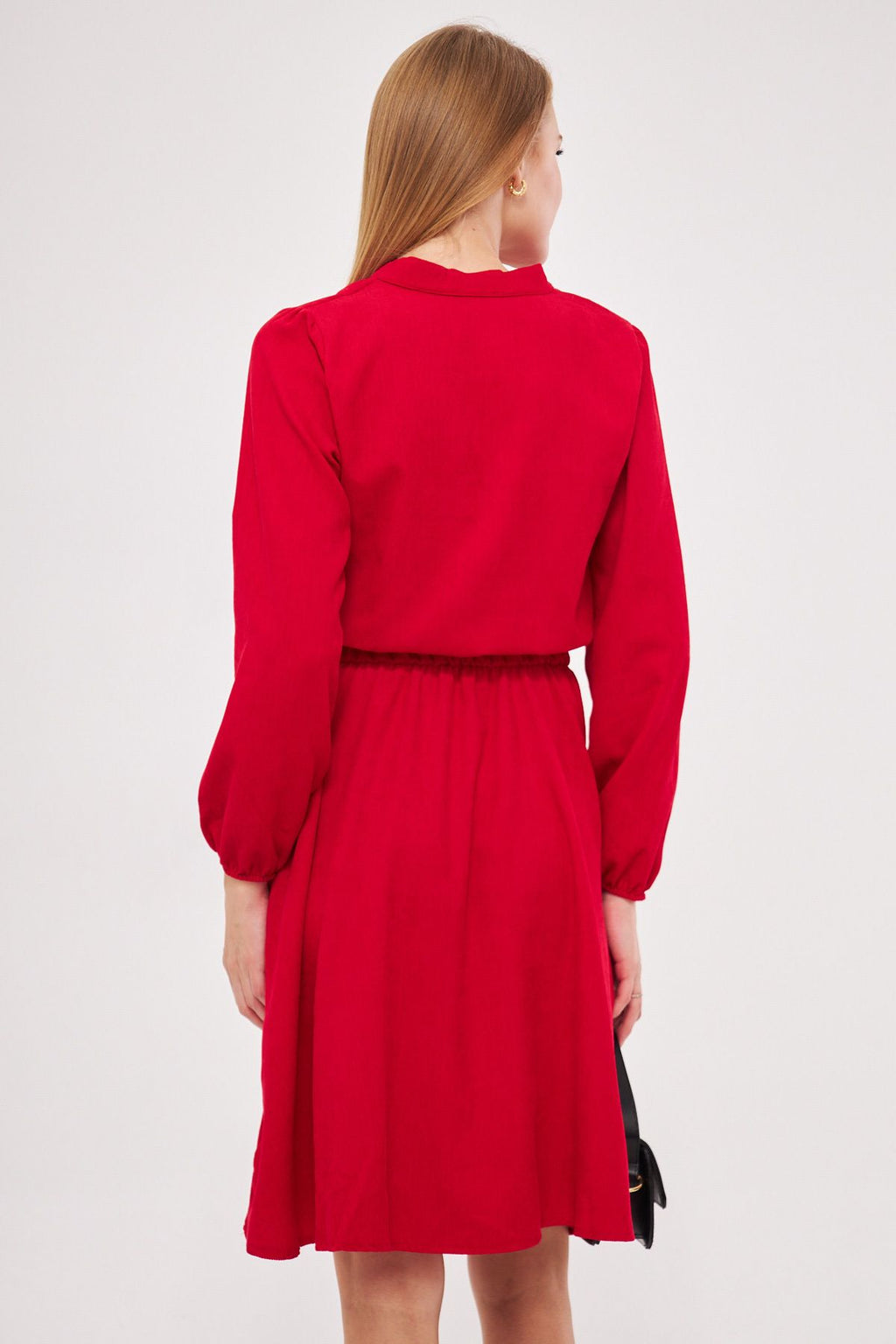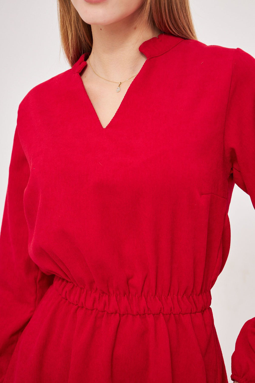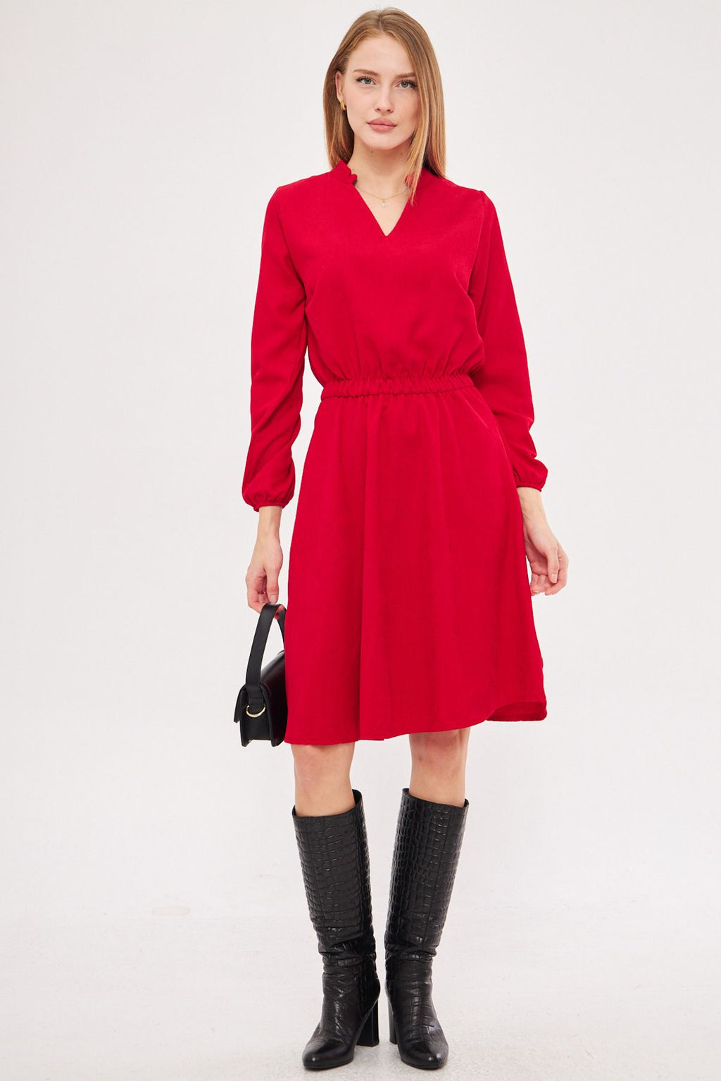 Woman Red Velvet V-Yaka Waist Fine Wick with Rubber Clash Dress ARM-25K001049