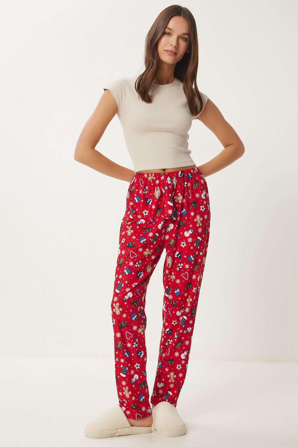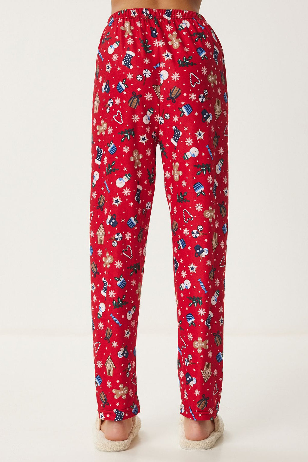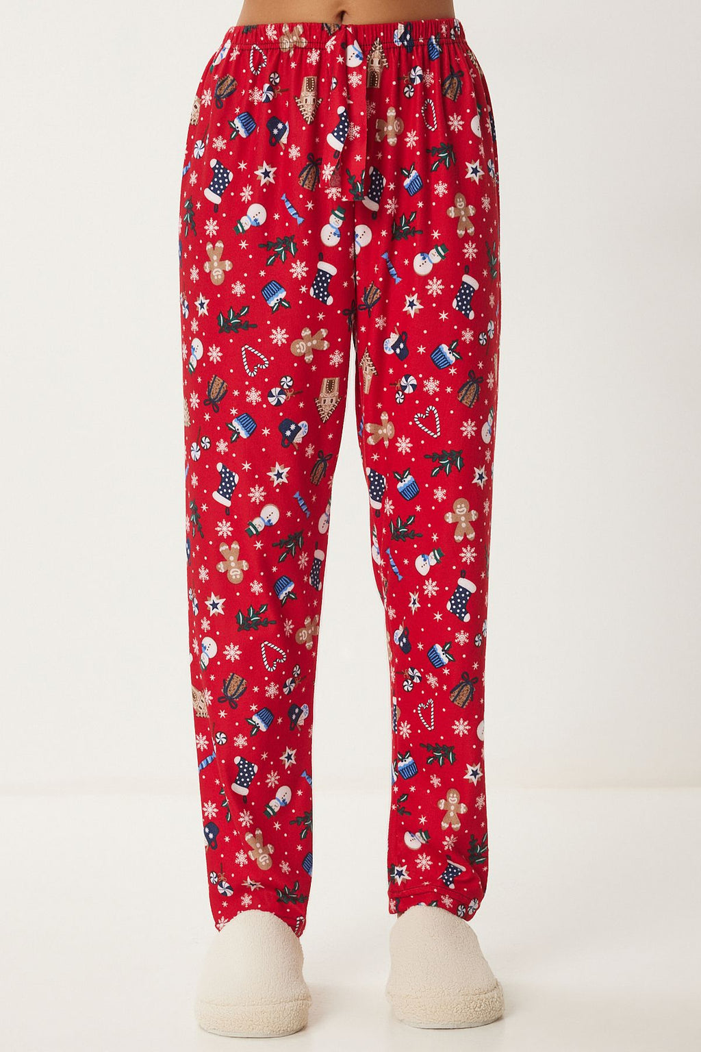 Woman Red White Patterned Soft textured knitting pajamas six Ce00089