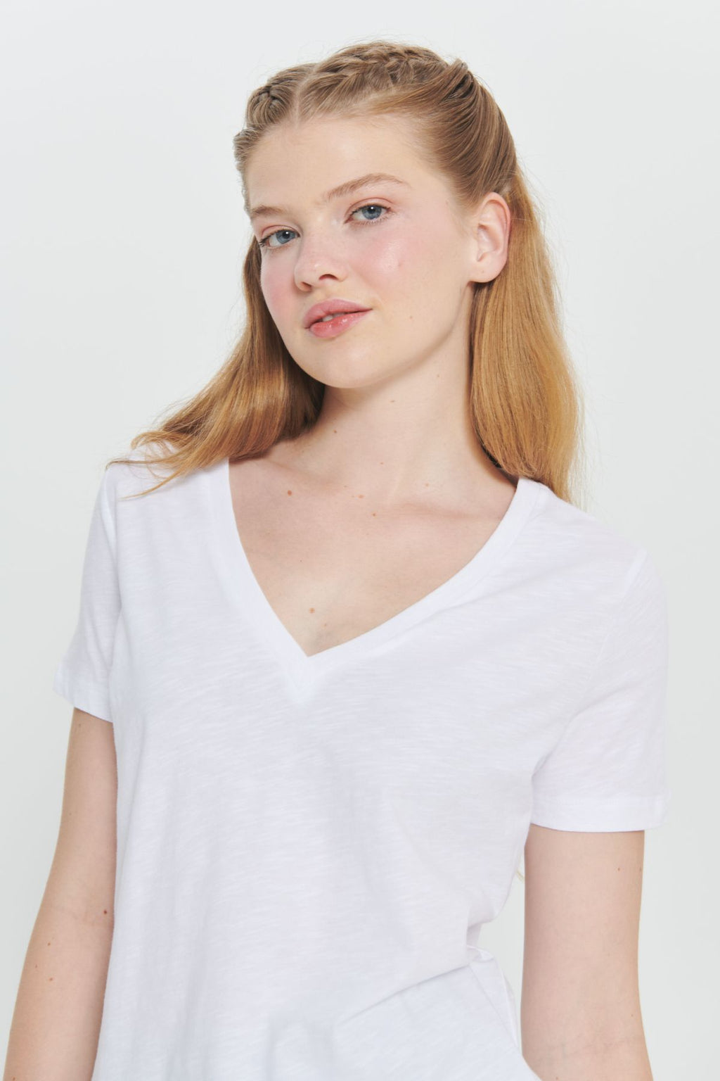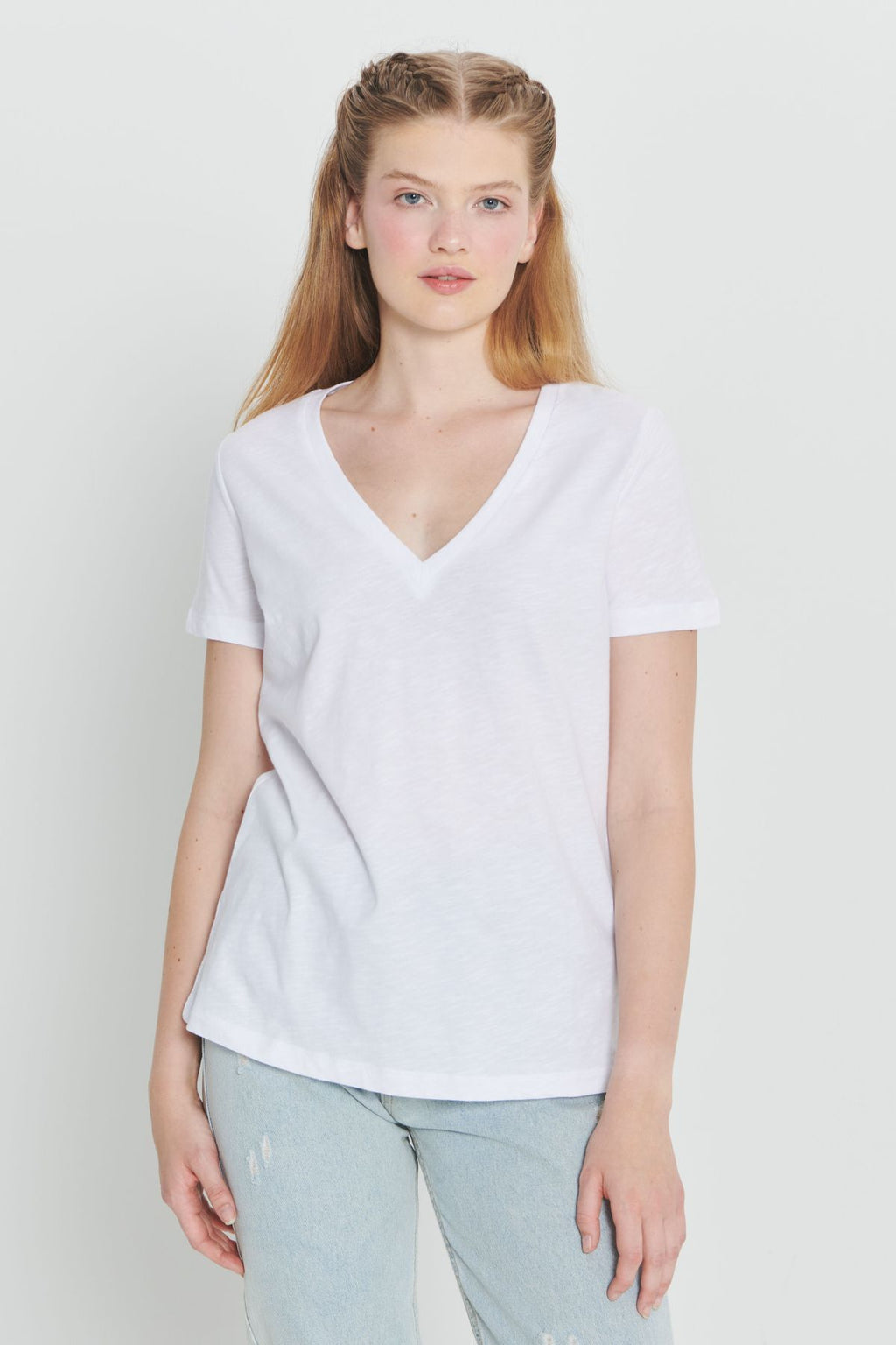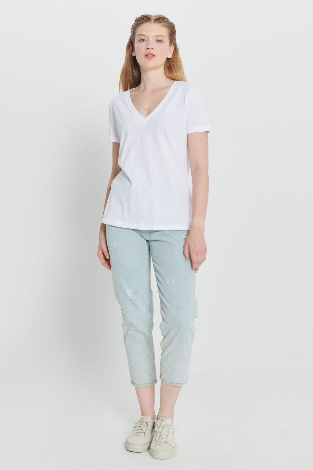 Woman White 100 %Cotton Standard Fit Normal Cut Normal Vaka Basic T -shirt