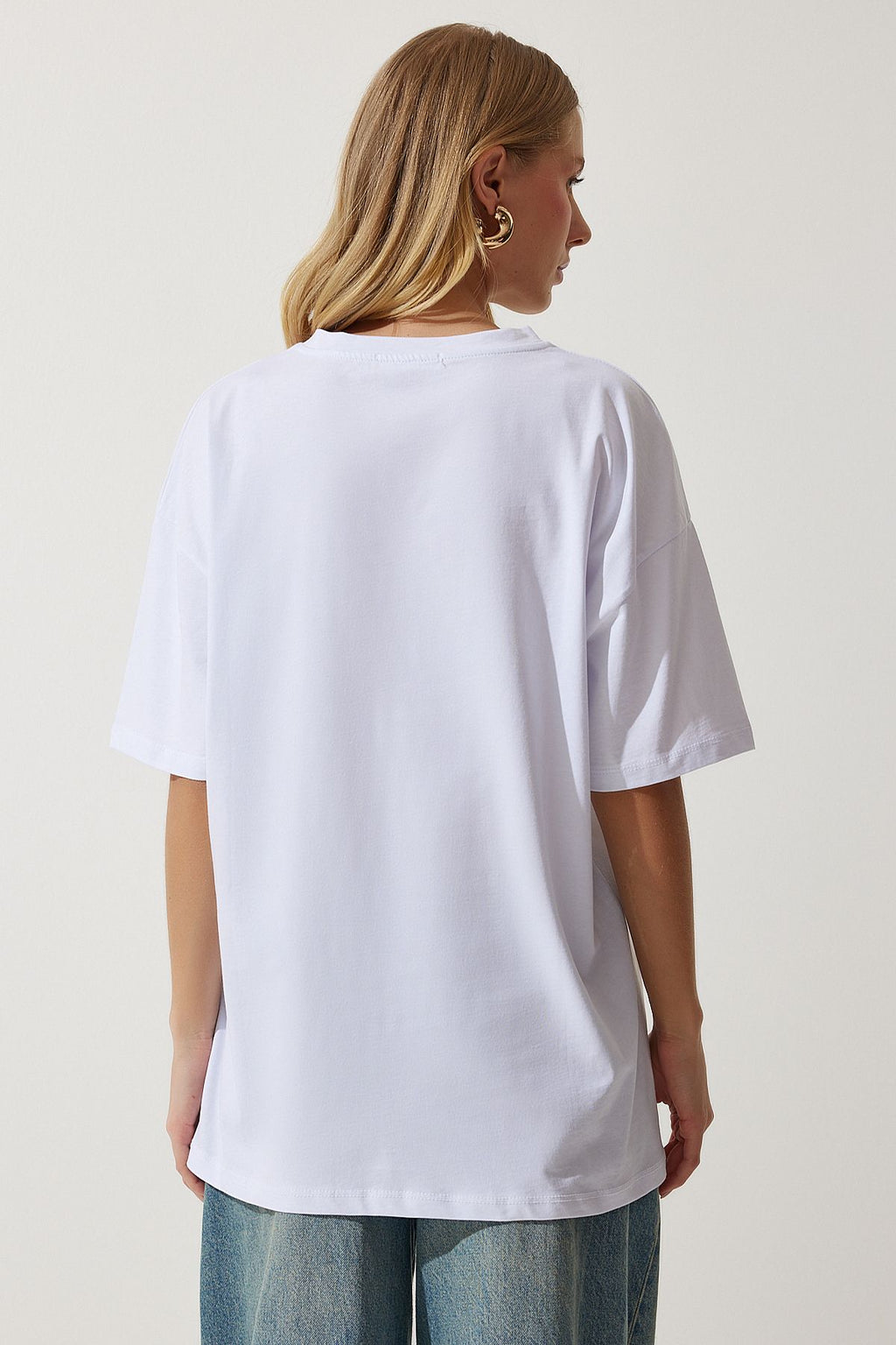 Woman White Bike Neck Basic Oversize Knitting T-Shirt BF00091
