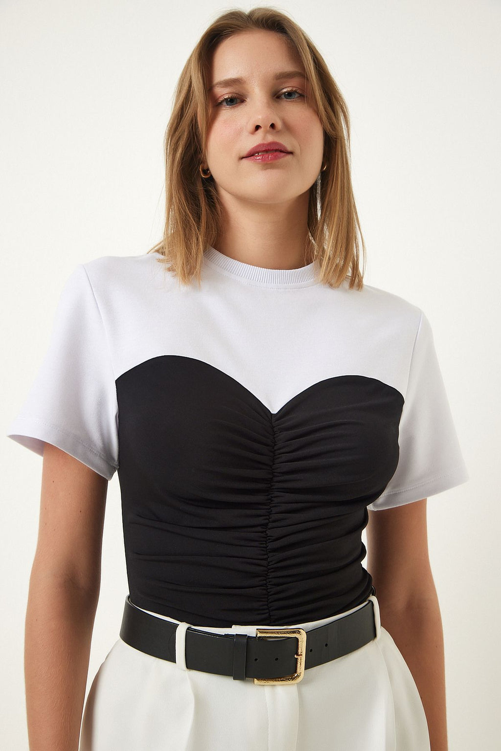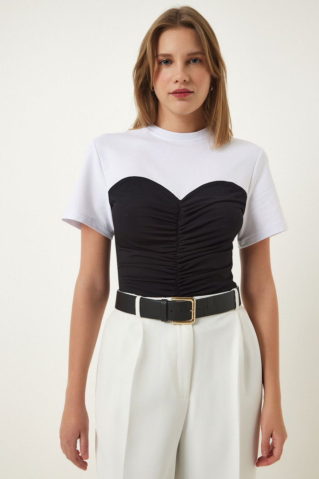 Woman White Black Bloc Colored Knitting Blouse KJ00005
