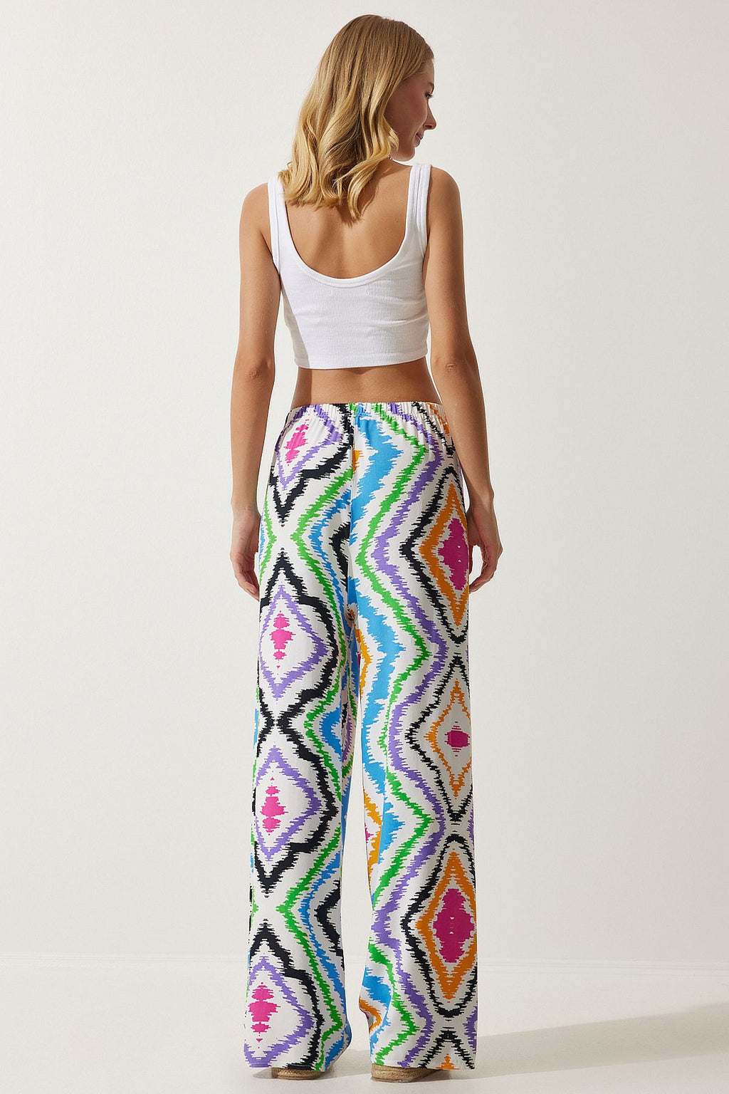 Woman White Blue Patterned Viscose Palazzo Pants EN00606