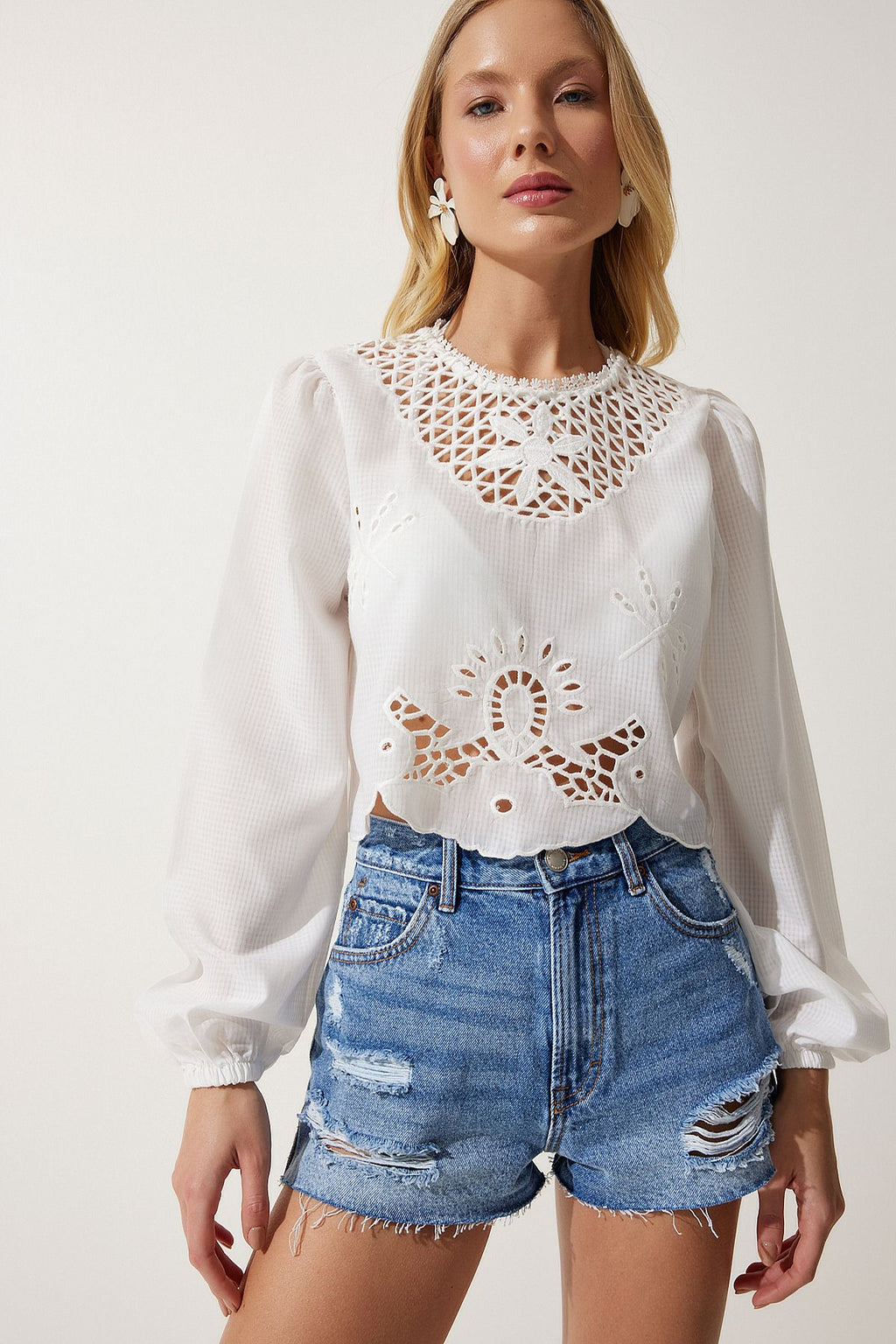 Woman White Fisto Crop knitted blouse es00148