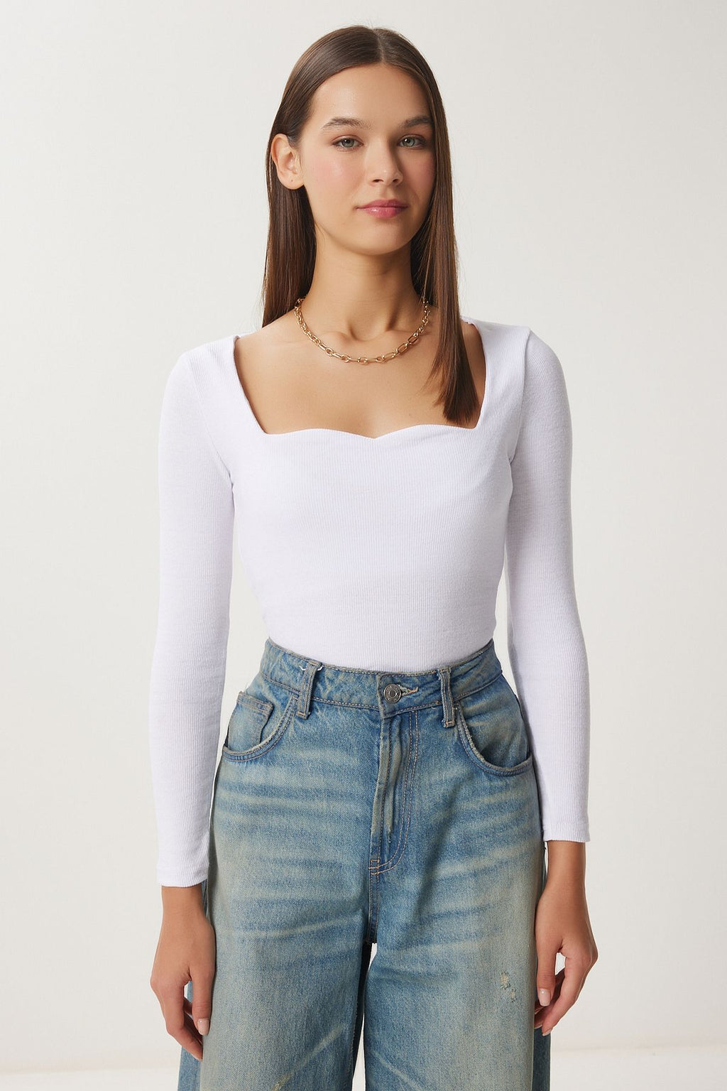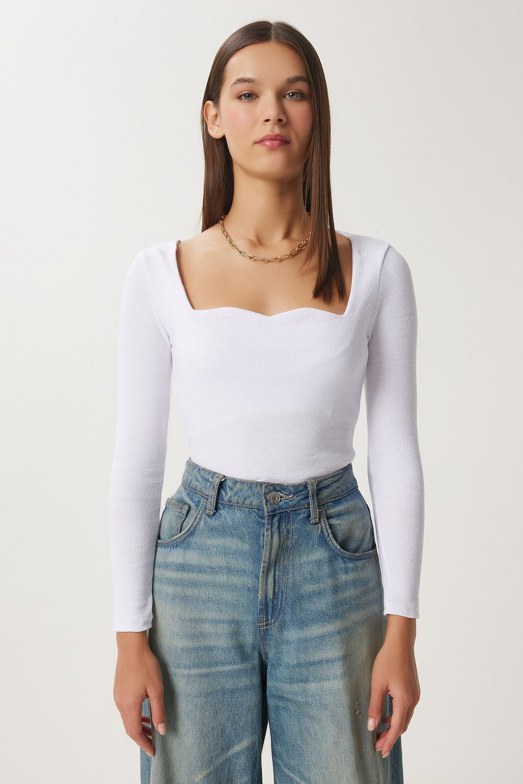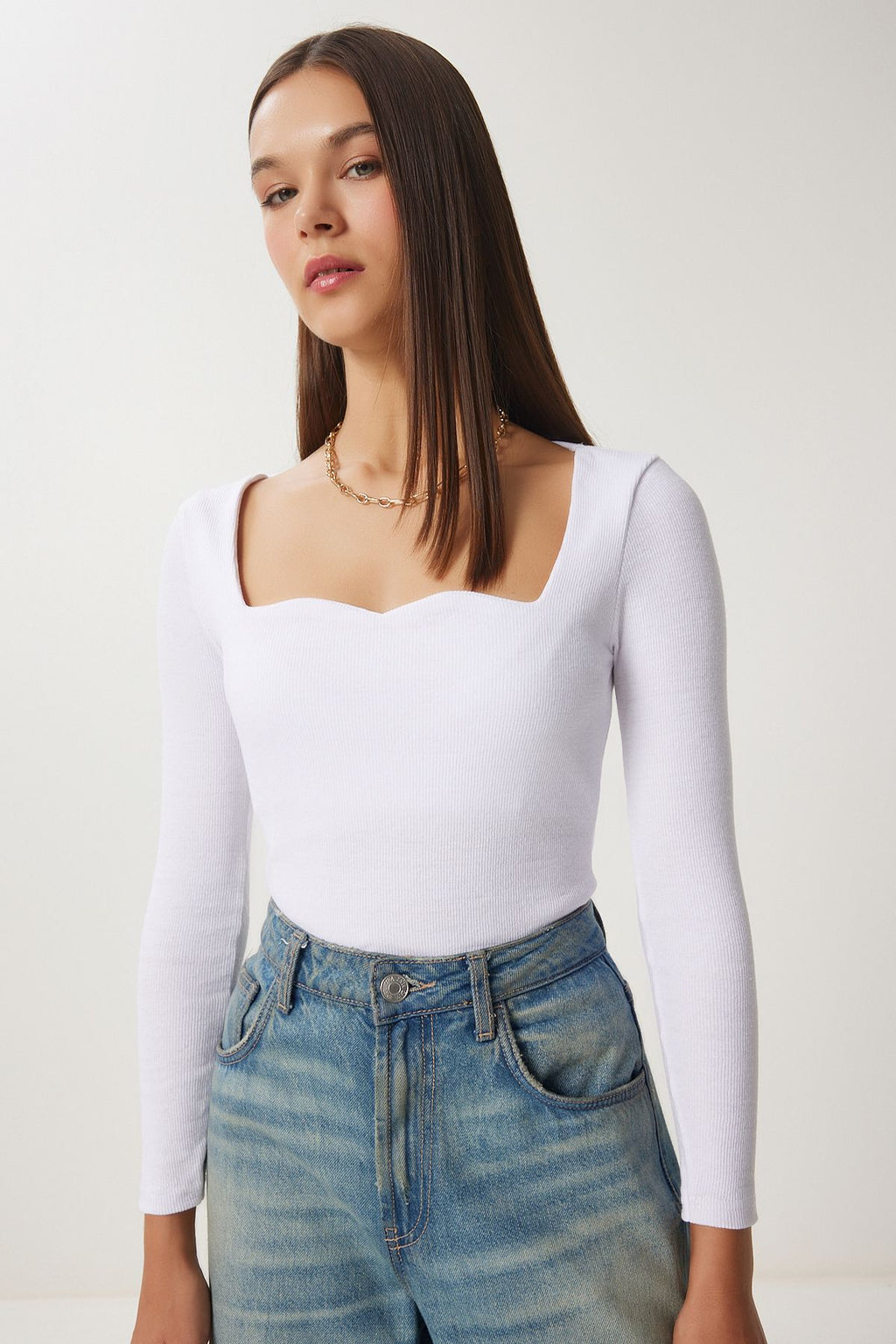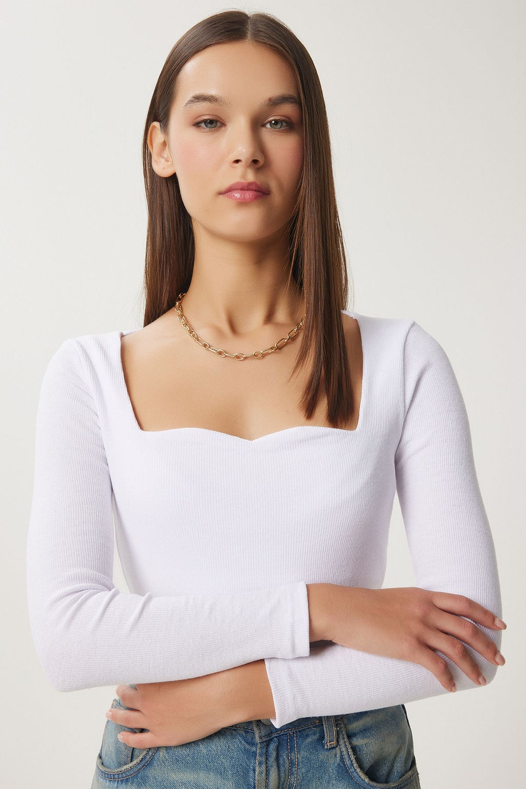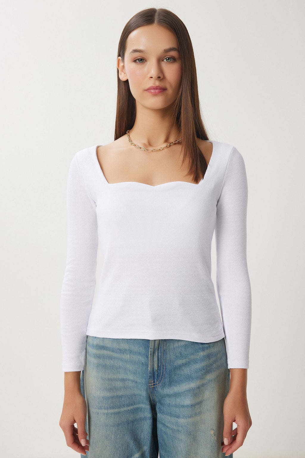 Woman White Heart Collar Wick Knitting Blouse GT00100