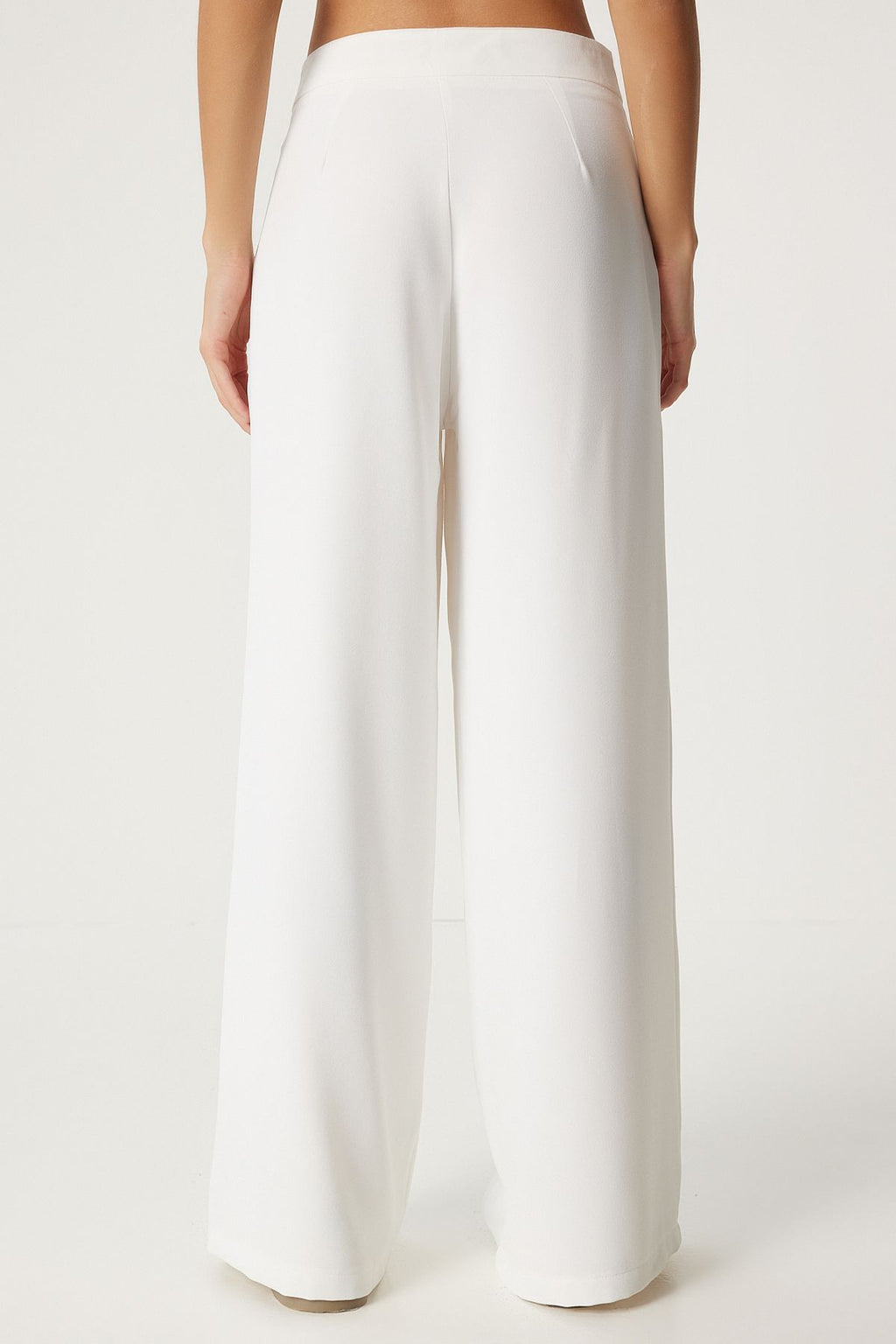 Woman White Pleated Weaving Palazzo Pants UL00038