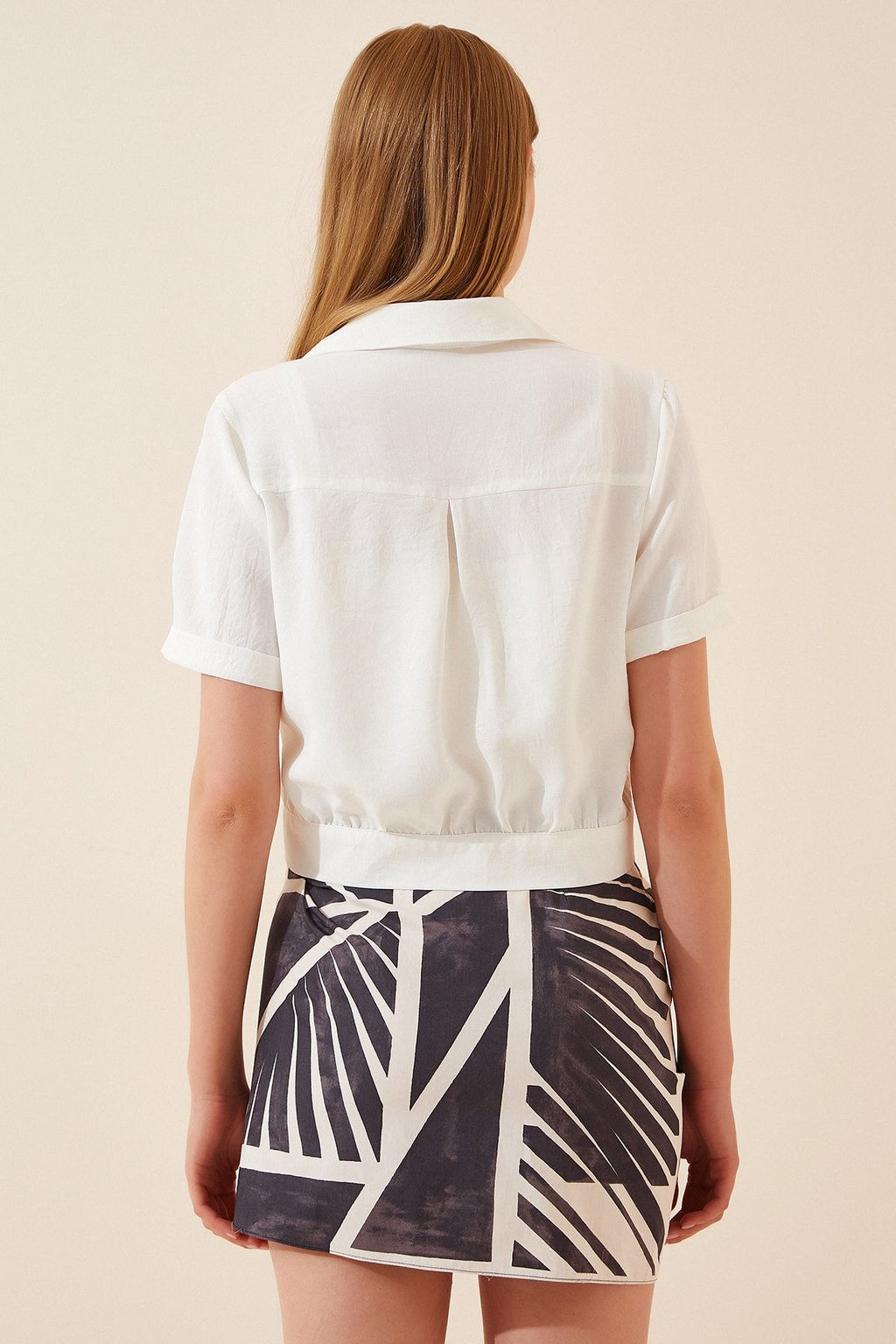 Woman White Pocket Short Sleeve Summer Occupation Viscose Jacket DD00924