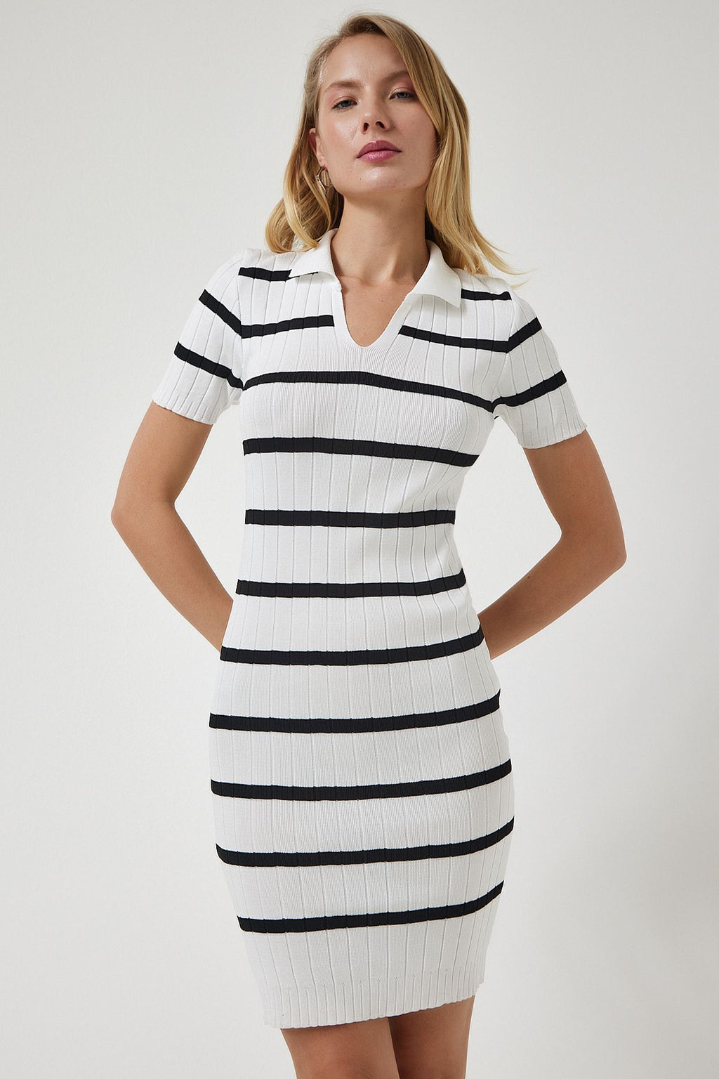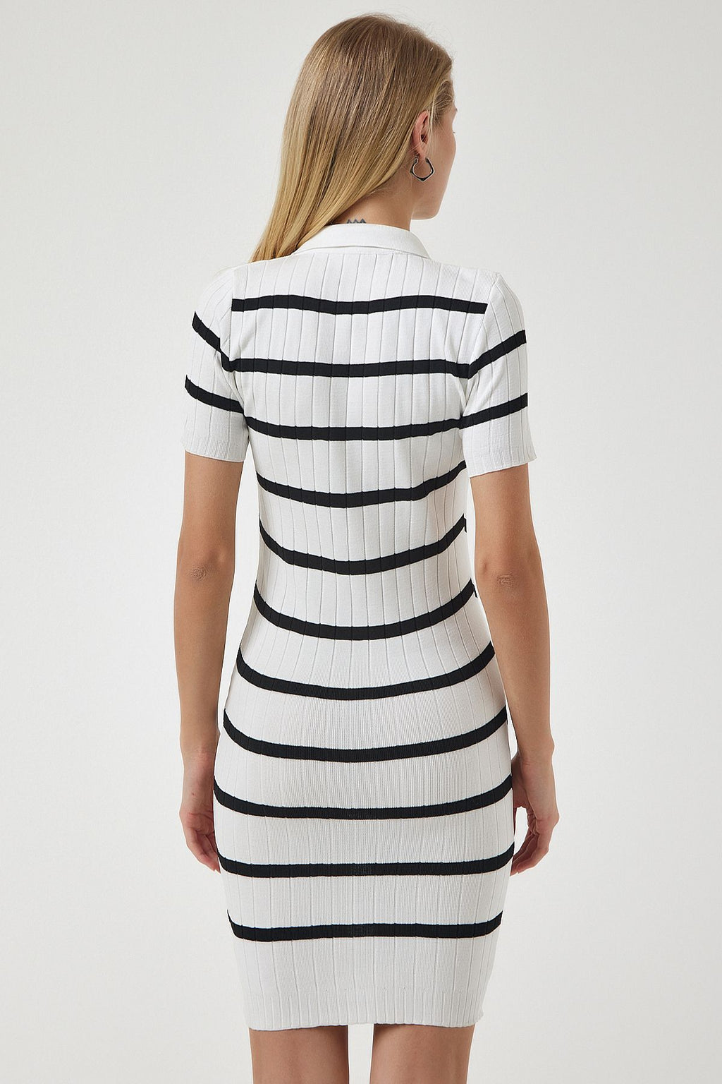Woman White Polo Yaka Suman Triko Dress Ow00029
