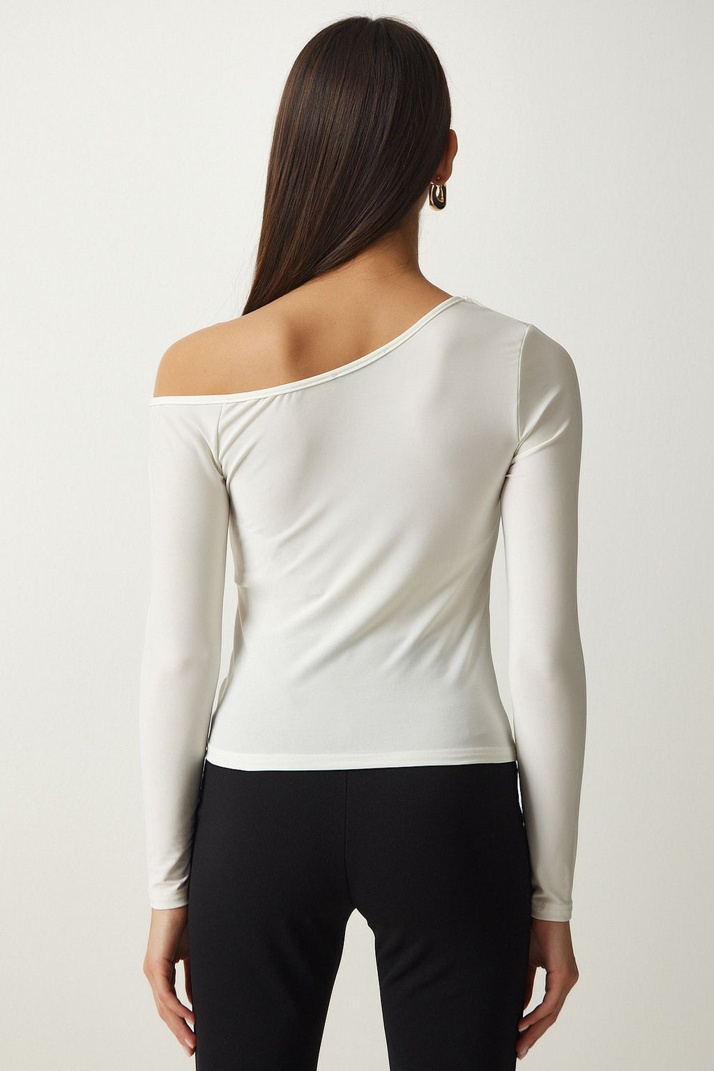 Woman White Shirring Detailed Knitting Blouse MZ00045