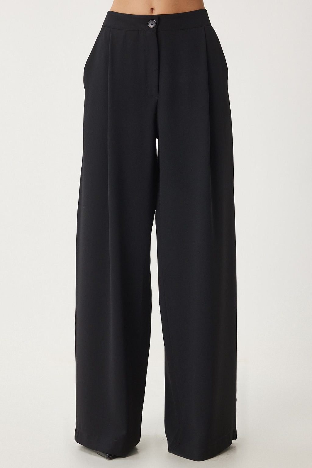 Woman with black pocket weaving palazzo pants ul00052
