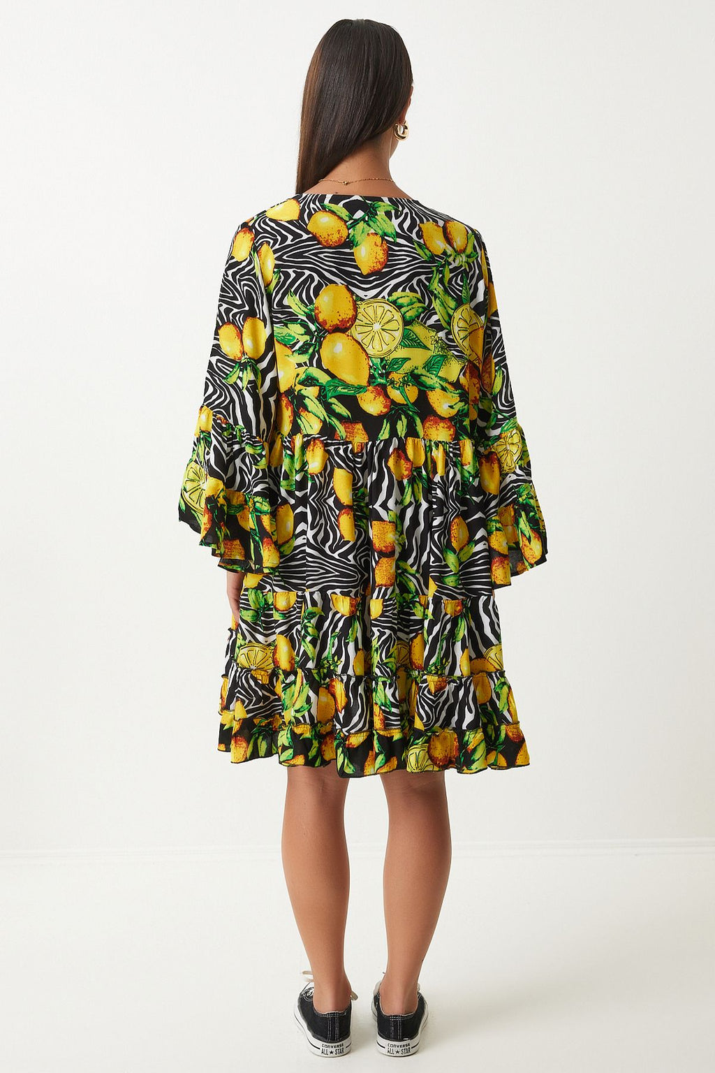 Woman Yellow Black Patterned Summer plenty of viscose dress FN03200